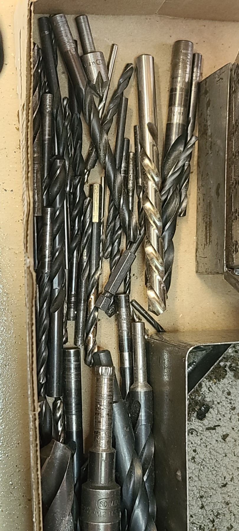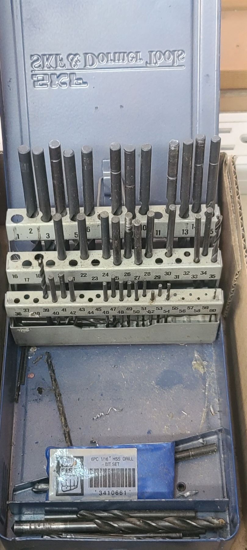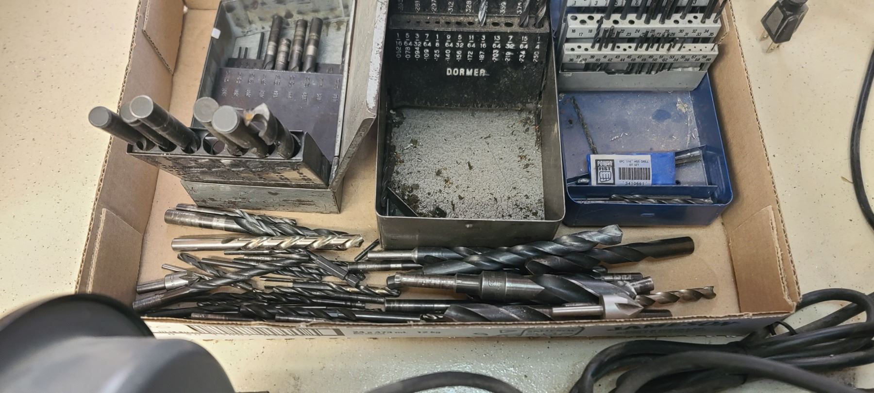 THREE DRILL INDEX'S AND MISC BITS IN A FLAT