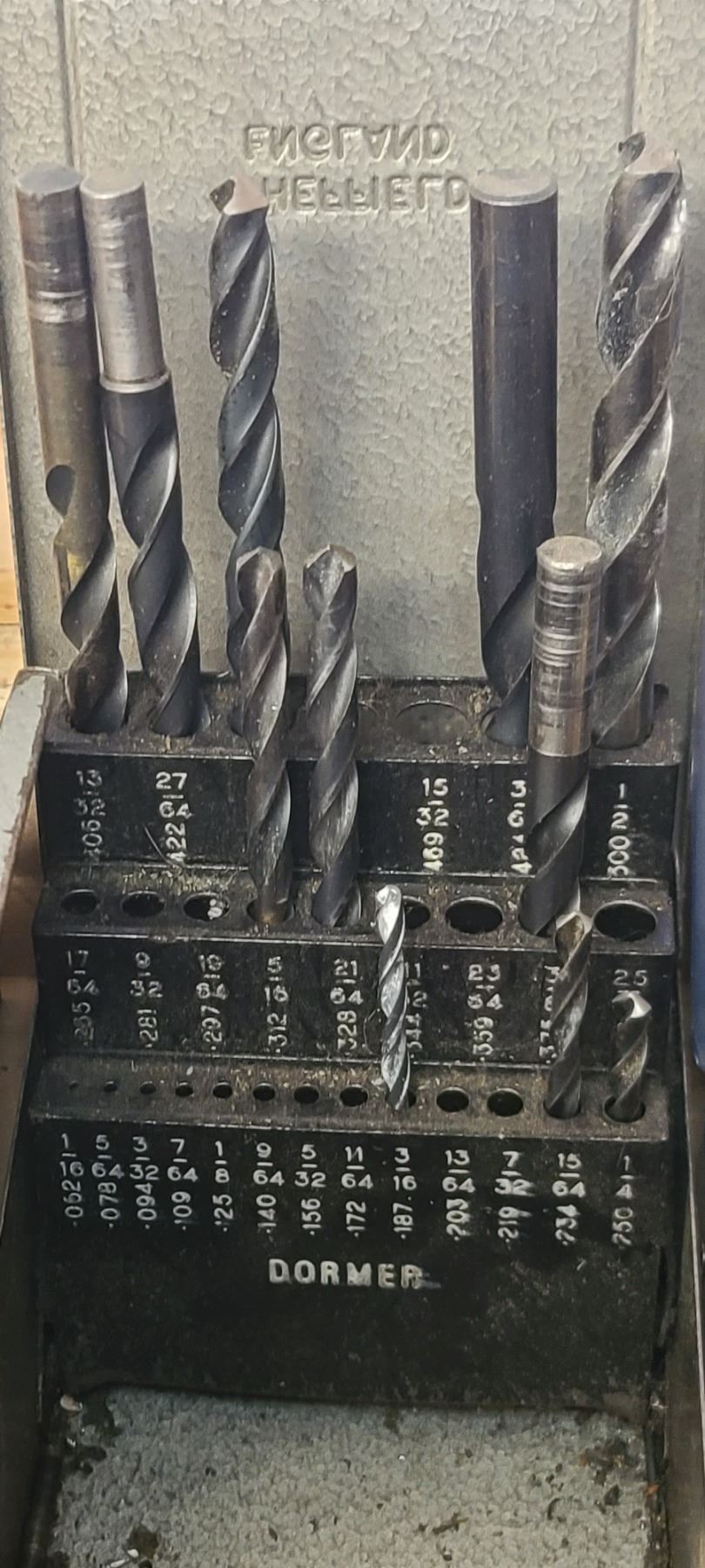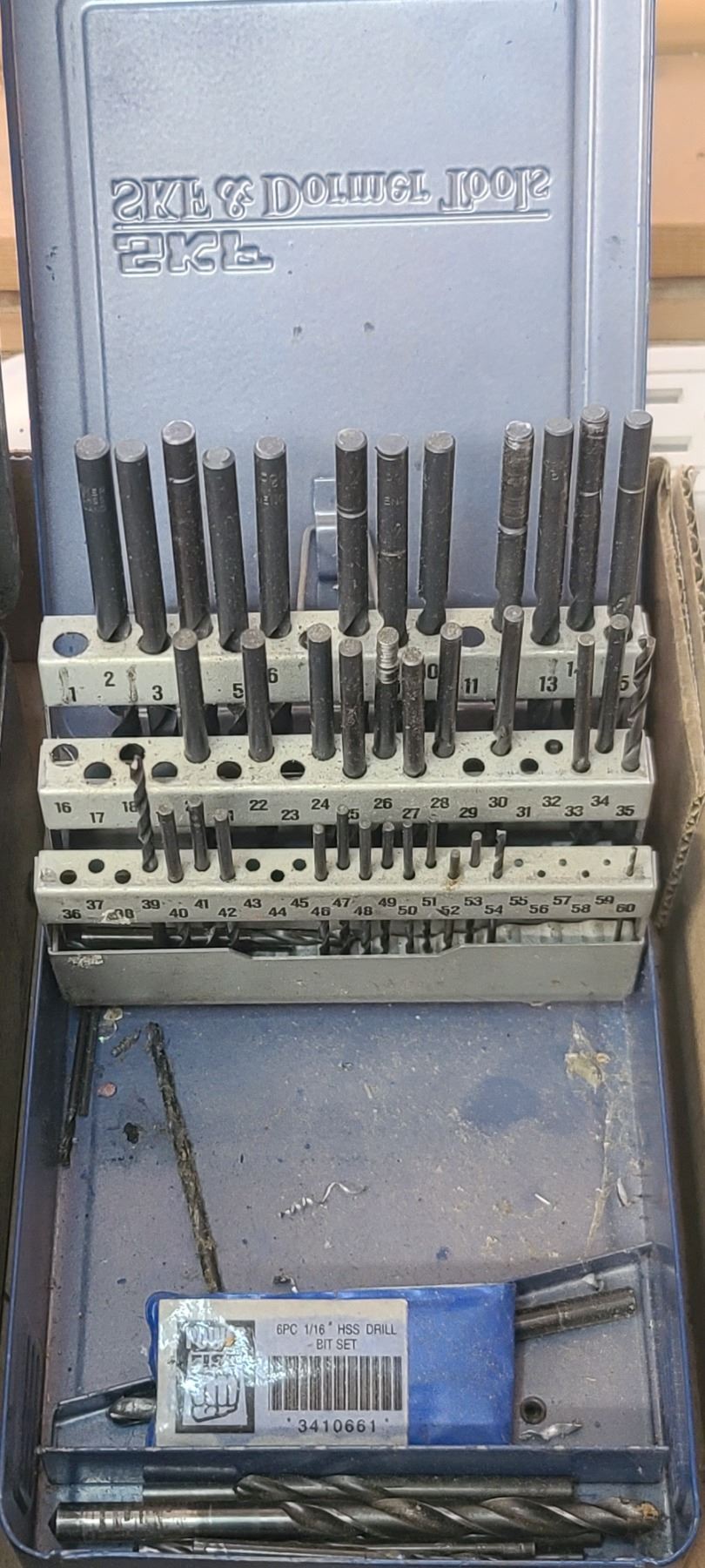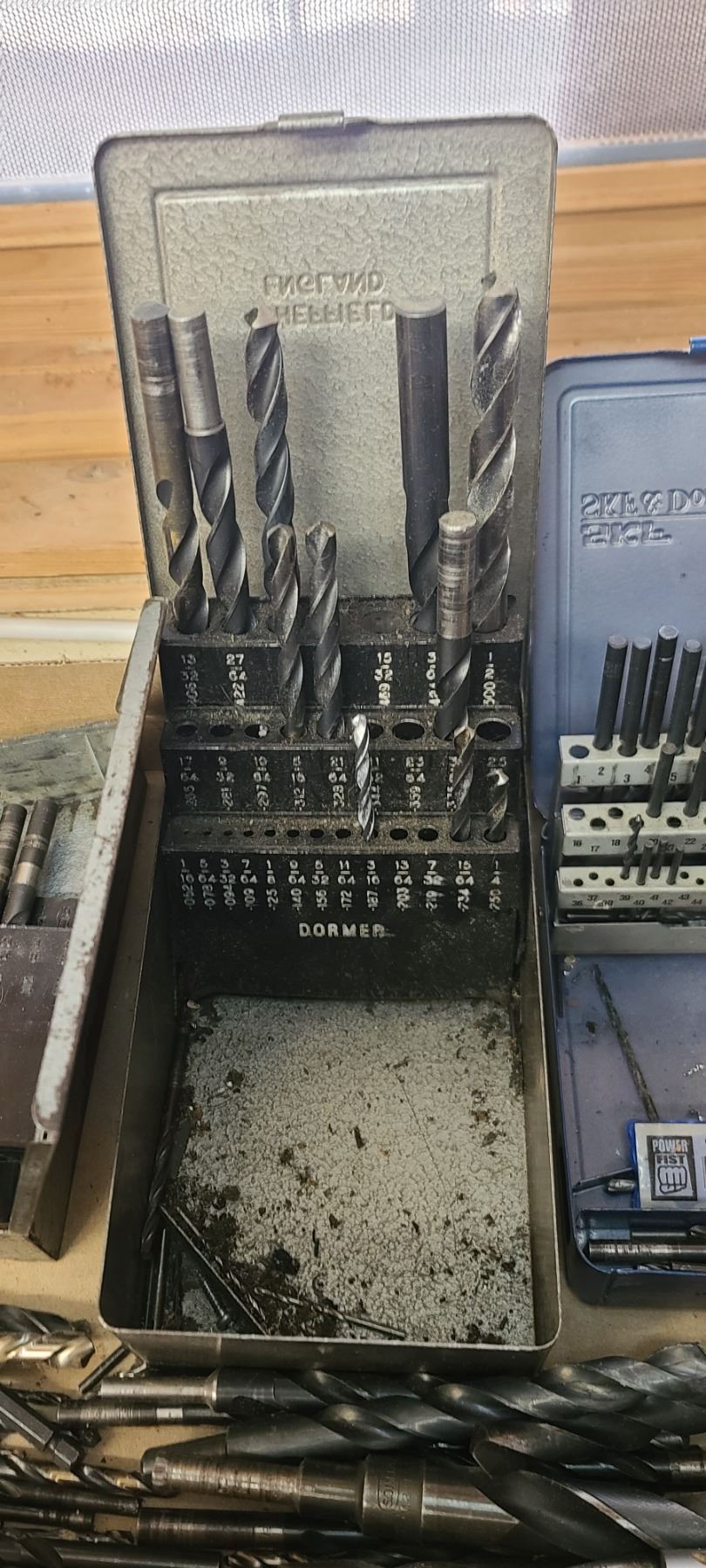 THREE DRILL INDEX'S AND MISC BITS IN A FLAT