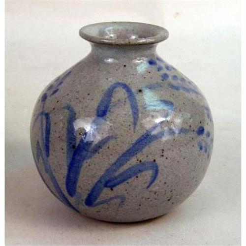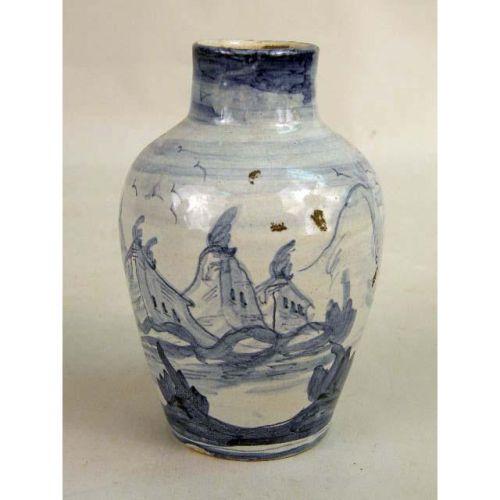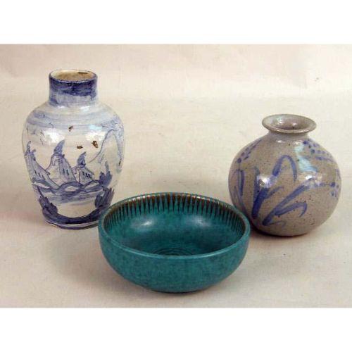THREE EARTHENWARE TABLE ARTICLES<BR><BR>Including, a shallow bowl and two small vases, tallest: 5 1/2"h