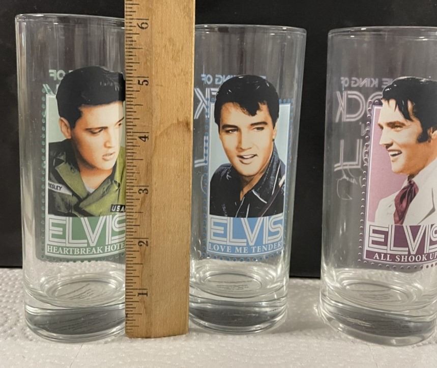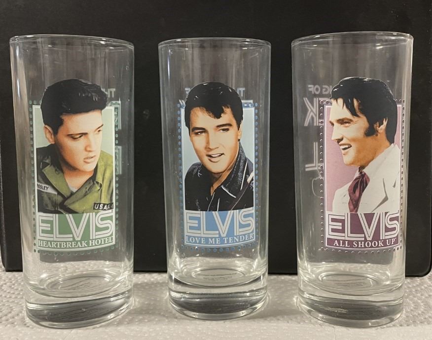 THREE Elvis Drinking Glasses