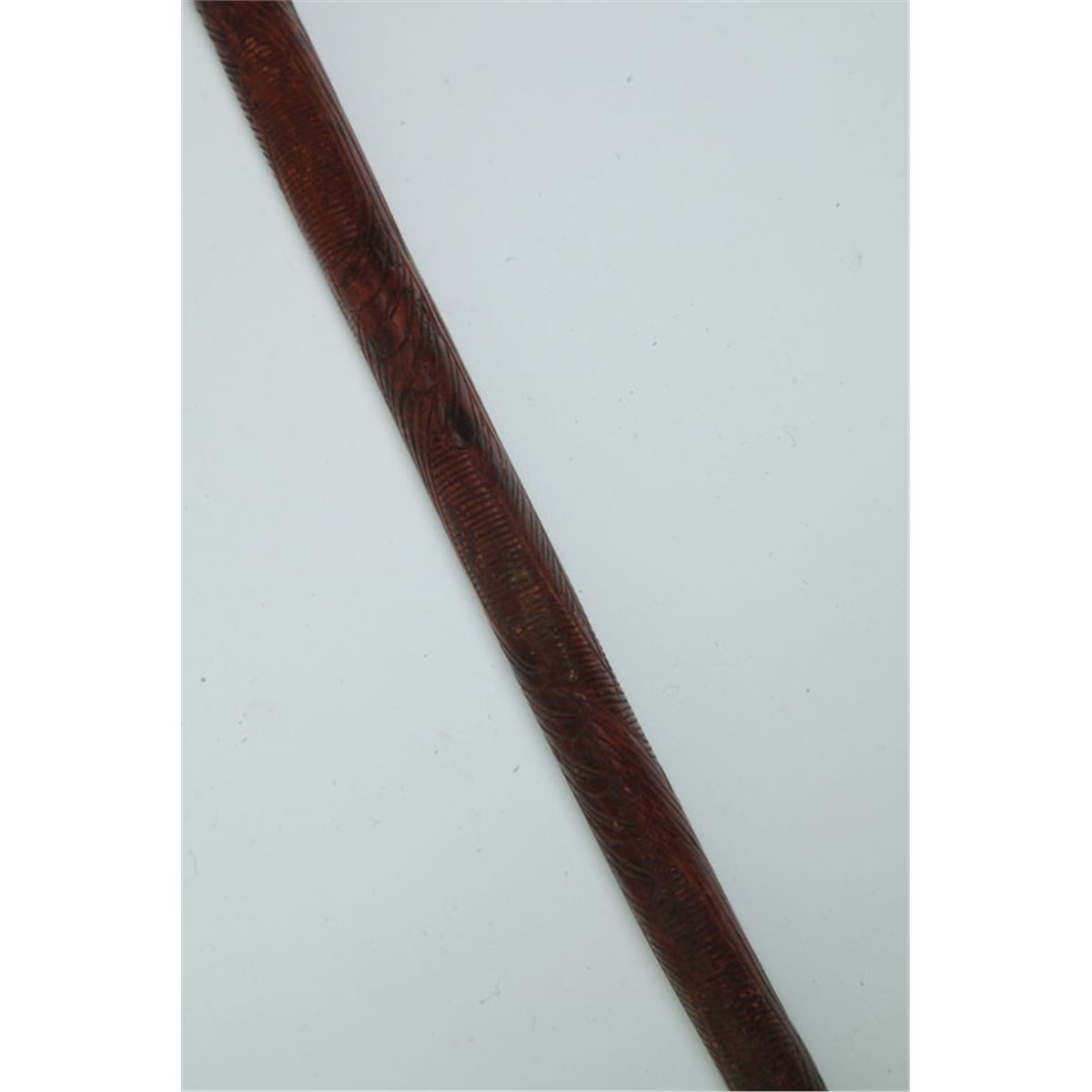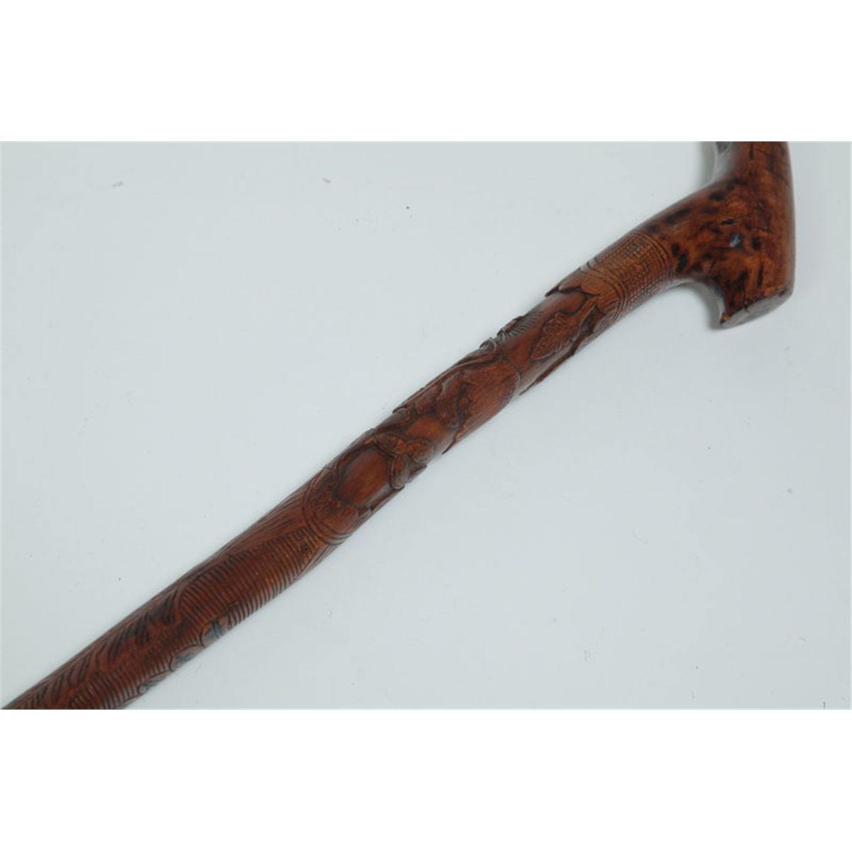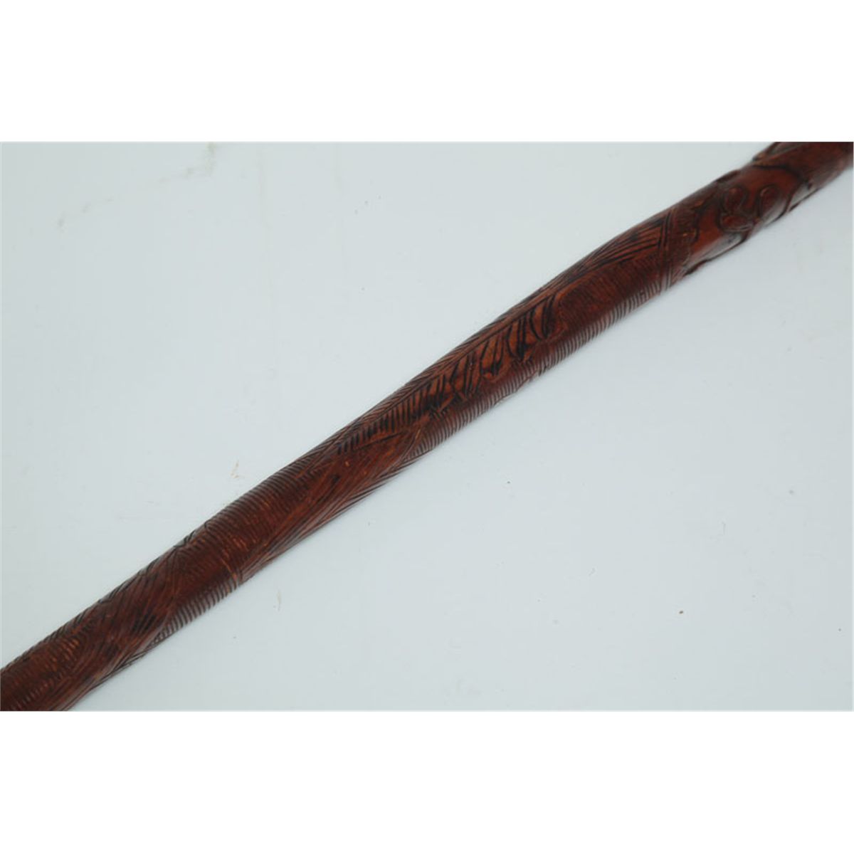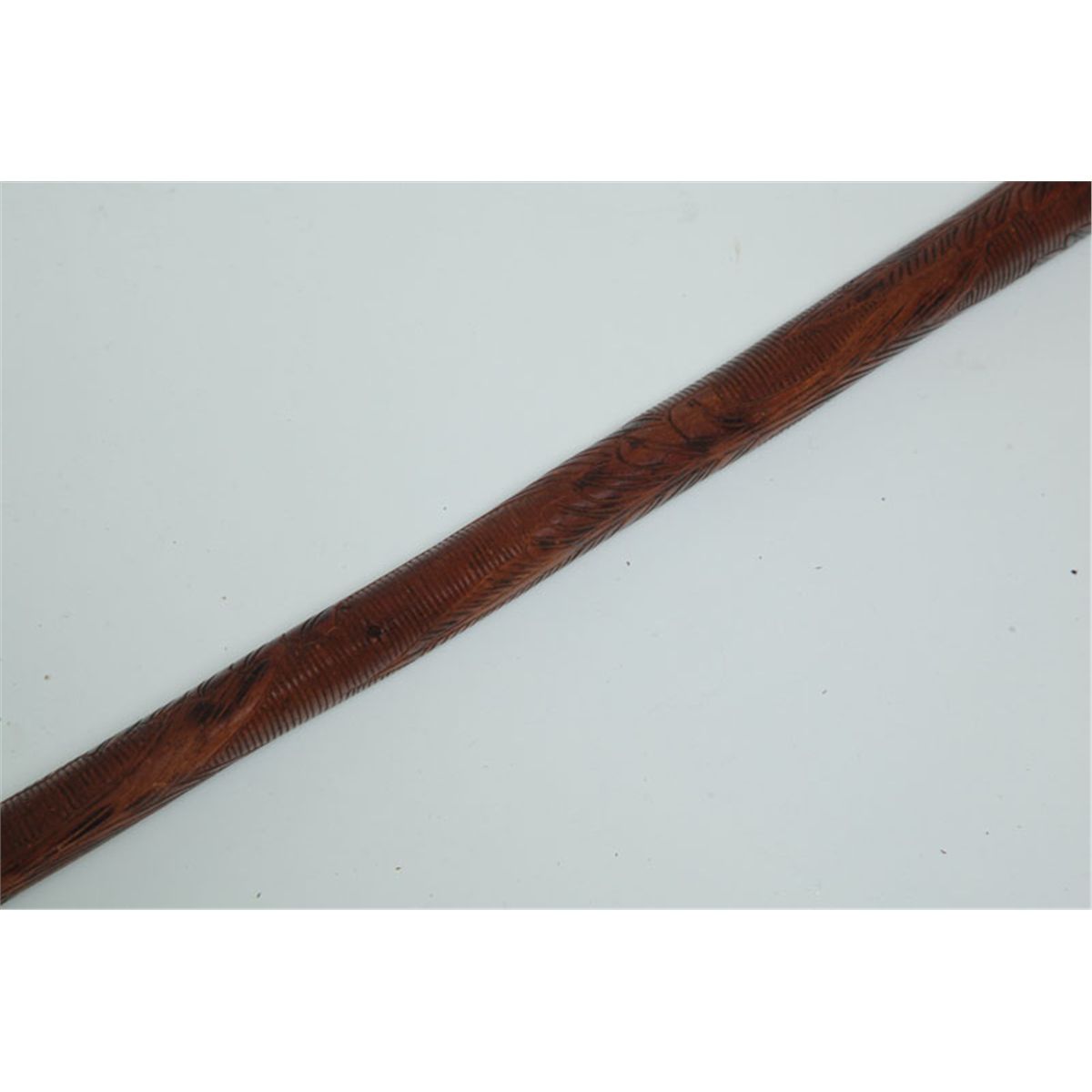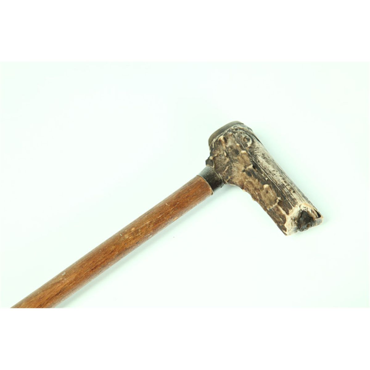 Two are Cincinnati, Ohio, 20th century. Each with antler handles, one with a carved skull. 34 1/2" and 33"l. Another is most likely Mexican, possibly mid 19th century. Elaborately carved, including a Mexican eagle and snake. 32"l.