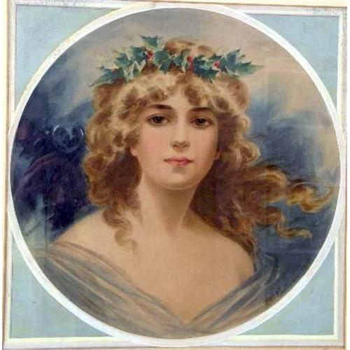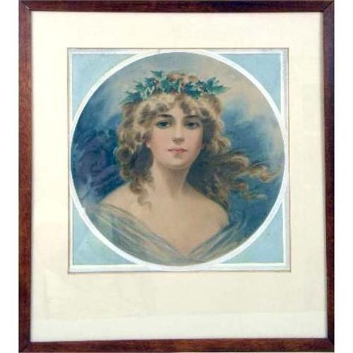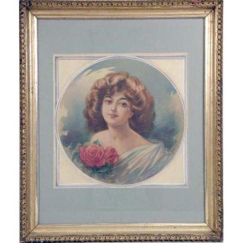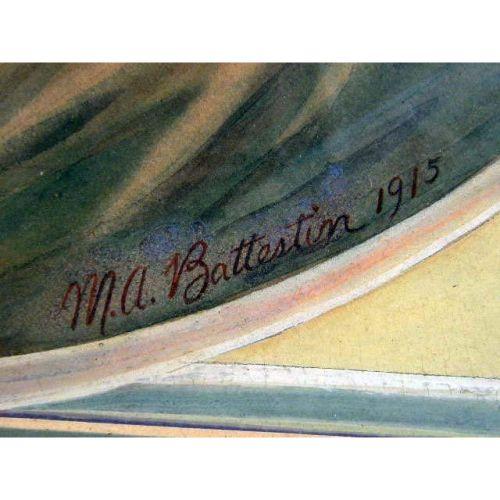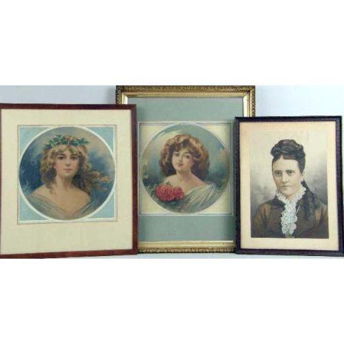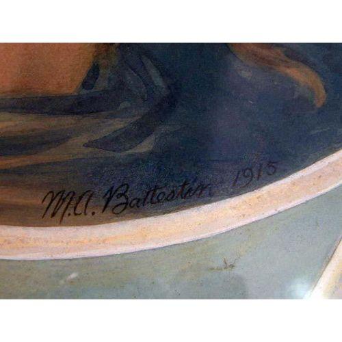 THREE FRAMED PORTRAIT WATERCOLORS<BR><BR>Bears signature M.A. Batterstin, some dated 1915, losses, two 13"h x 13"w, the third, 14"h x 10"w