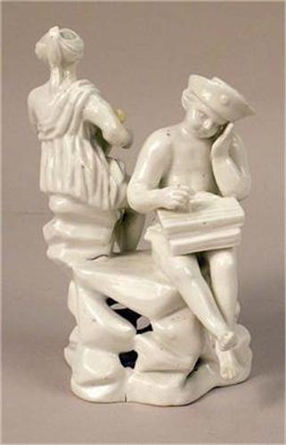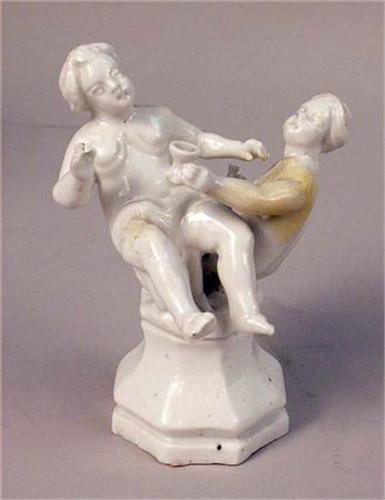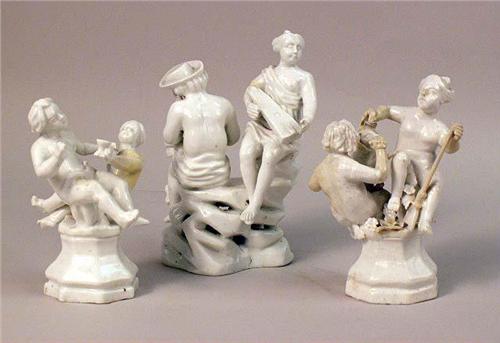 Probably Orleans, comprising a group of two drinkers, a group of two children with a goat, and a musician and artist. Some restoration to extremities. Tallest 6 3/4"h.