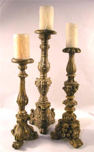 THREE GILTWOOD PRICKET STICKS; Tallest, 30"h