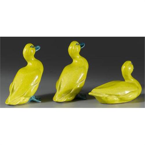 <B>A GROUP OF DUCKS</B></I><BR><BR>A group of three Majolica ducks, each signed to base <I>Italy</B></I><BR>Two 6-1/2in. high and one 4-1/2in. high<BR><BR> <B>Condition Report:</B> Normal signs of wear as appropriate with age; one with small chip to tip of foot, one with old repair to beak.<BR><BR><b>Shipping:</b> Requires 3rd Party Shipping (<a target="_blank" href="http://www.heritageauctions.com/common/shipping.php">view shipping information</a>)