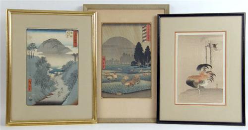 <b>THREE JAPANESE NATURE-THEMED WOODBLOCK PRINTS</b>