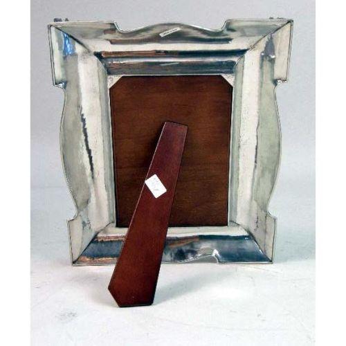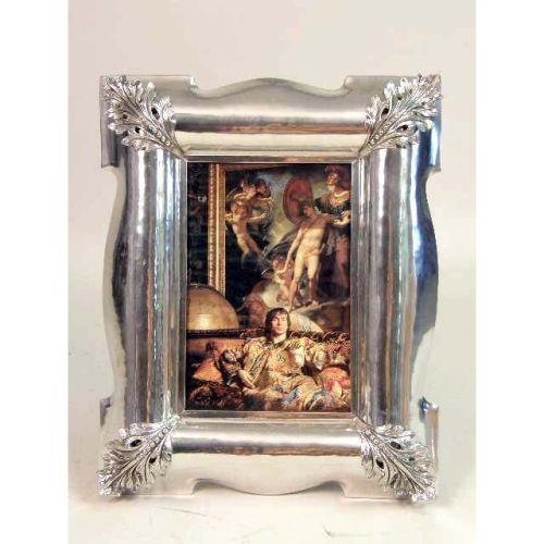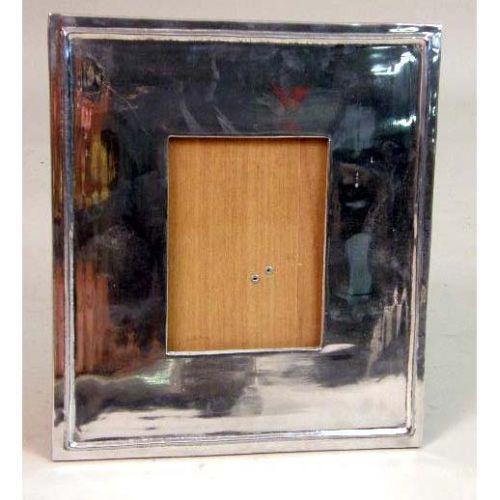 THREE LARGE SILVER-METAL FRAMES<BR><BR>Two with scrolling foliate corners, marked "Made in Italy," the third a plain frame marked "Hecho en Mexico," the largest: 21"h x 17"w x 2-1/2"d