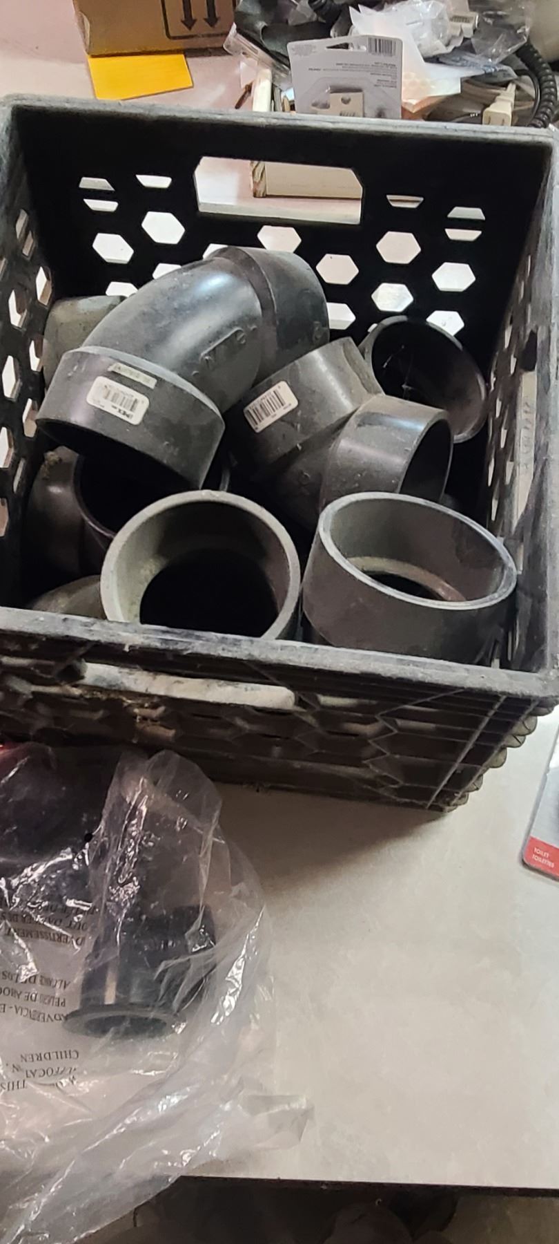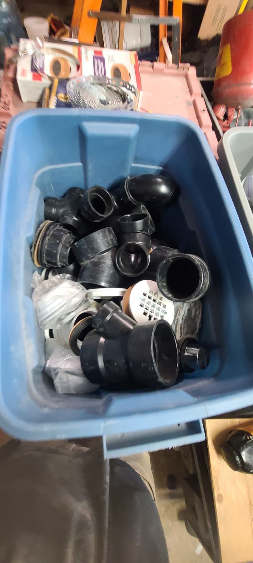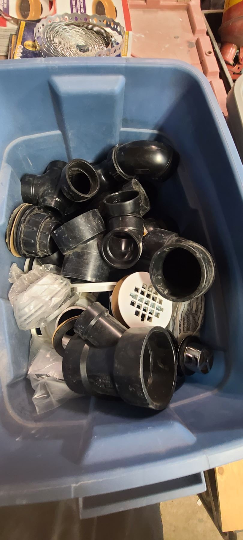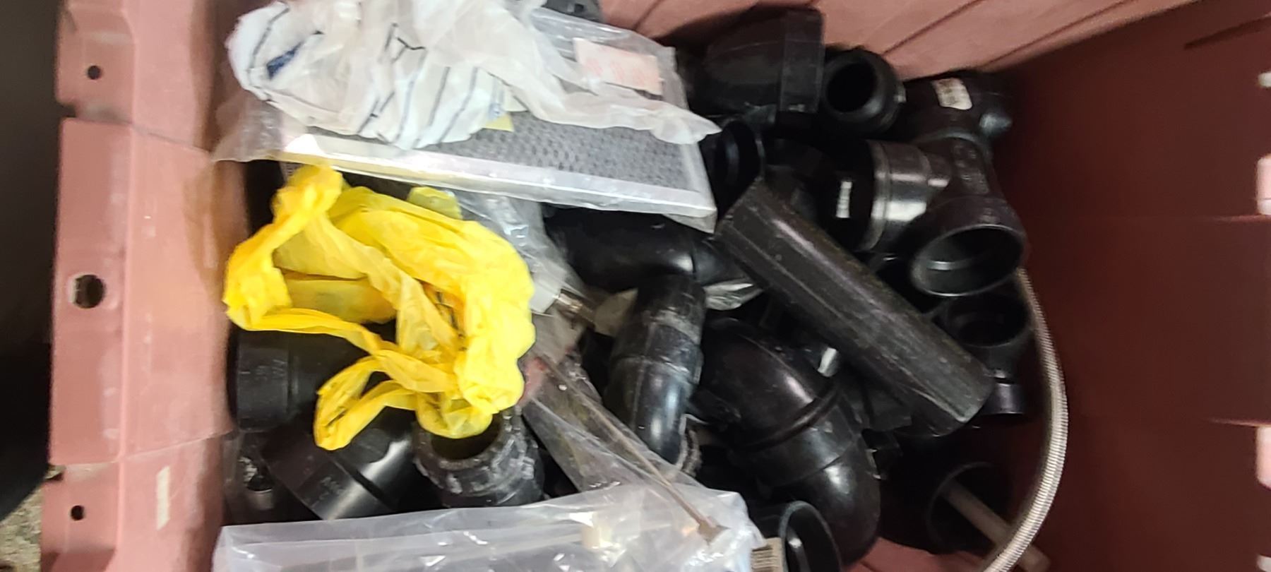 THREE LARGE TOTES OF PLUMBING AND ABS FITTINGS AND SUPPLIES