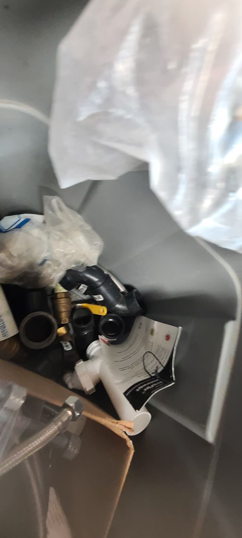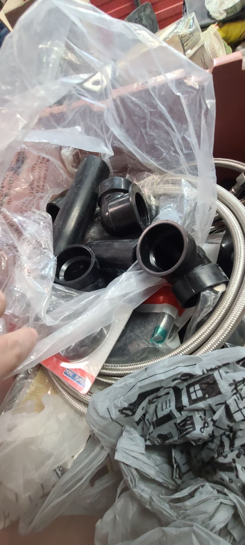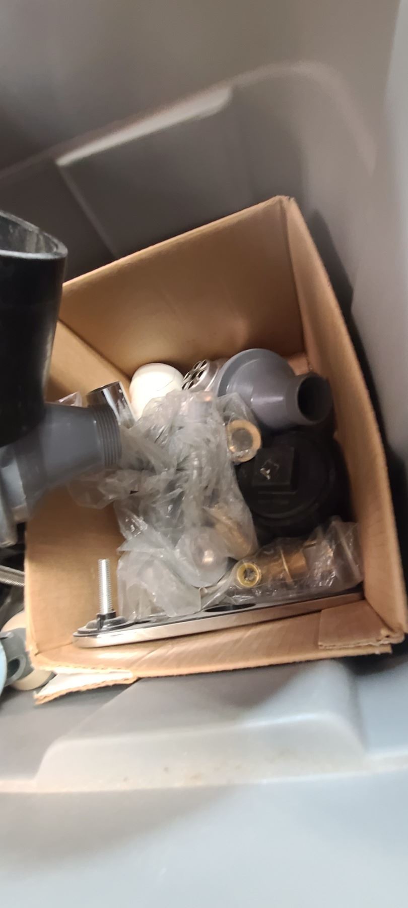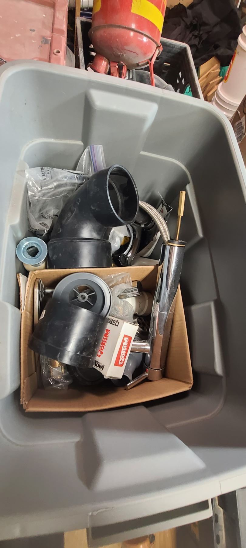THREE LARGE TOTES OF PLUMBING AND ABS FITTINGS AND SUPPLIES