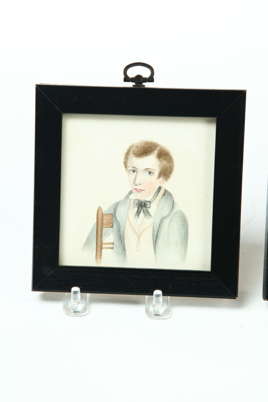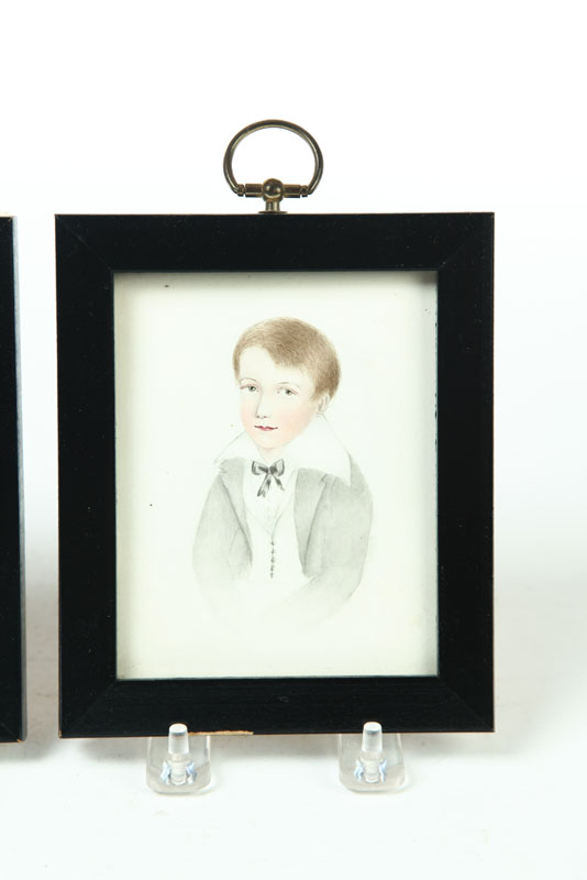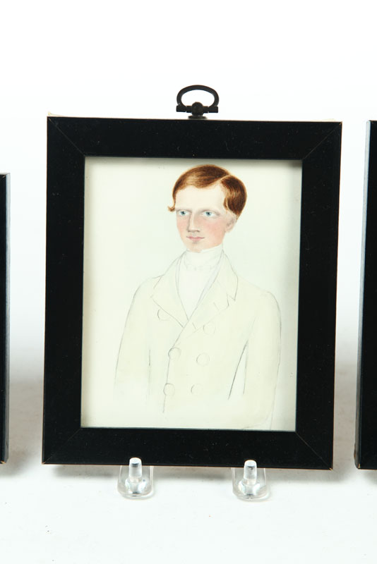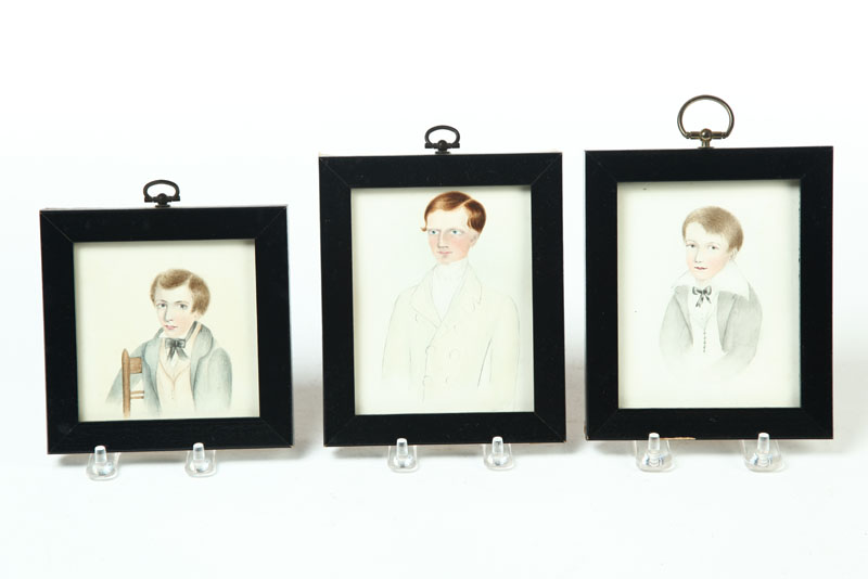 American, ca.1840, watercolor on heavy stock. Three brothers, two identified as James and Bryan B. Bell. The same two have partial 1839 Whatman watermarks in the stock. In black frames, 5"x5" and two 6"h. 5"w.