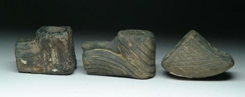 THREE MISSISSIPPIAN TO PROTO-HISTORIC TYPE SANDSTONE PIPES. One bird effigy, two incised. All three from Lee County, VA. Circa 1200-1500AD style. SIZES: Largest is 3in. l x 2in., Smallest is 2in. l x 2in.. CONDITION: Very good. 9-25984-50 The Tennessee Collection of Prehistoric Indian Artifacts from the Allen Graves Estate. SPECIAL NOTE: We do not regularly sell Prehistoric Indian stone artifacts and therefore have very little experience and no expertise in this area. All of the following lots have come from the Collection of the Late Allen Graves of Tennessee. The collection was inherited some years back by his daughter, who now lives in Maine. This collection was consigned to us directly from her. We employed someone to generally identify styles and types, but as stated above, due to our lack of expertise in this field, we can not guarantee the age or origin of the following pieces. We are relying on you, the buyer, to determine to your satisfaction the origin and age of each item in the collection.