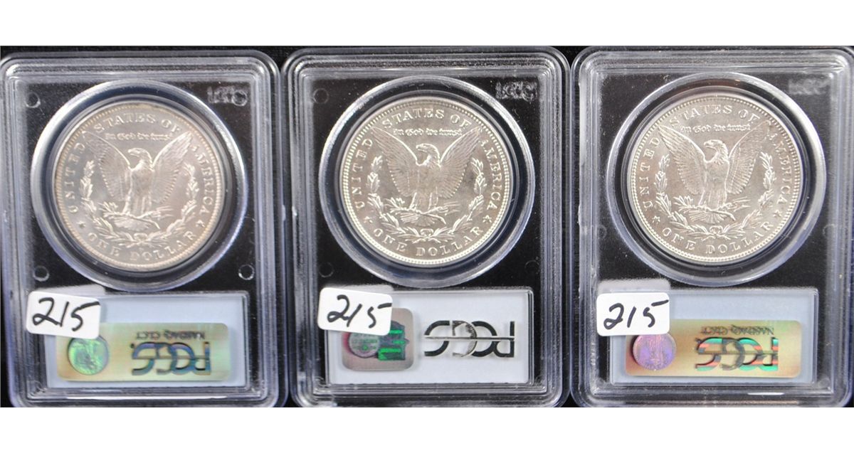 THREE MORGAN DOLLARS - PCGS MS64 - 1884-0, 1886, 1887 - SOLD PER COIN TIMES 3