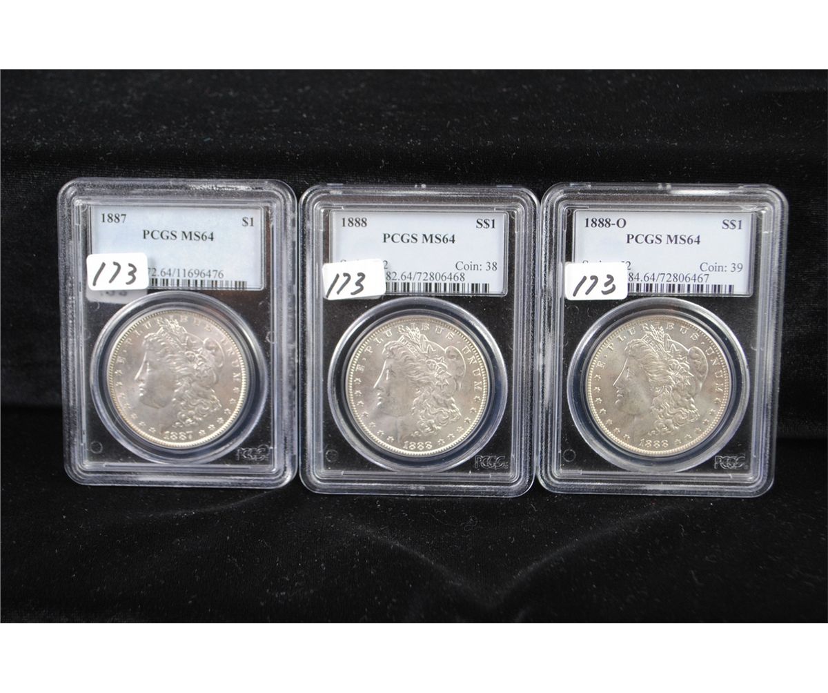 THREE MORGAN DOLLARS - PCGS MS64 -1887, 1888, 1888-0 - SOLD PER COIN TIMES 3