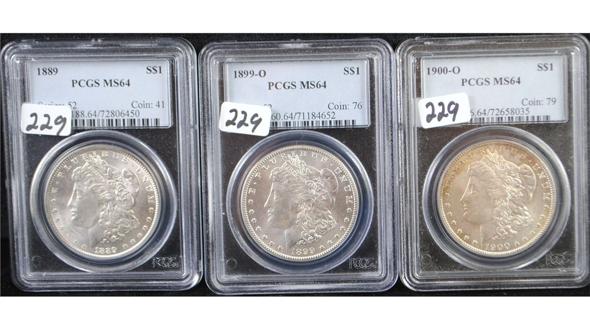 THREE MORGAN DOLLARS - PCGS MS64 - 1889, 1899-0, 1900-0 - SOLD PER COIN TIMES 3