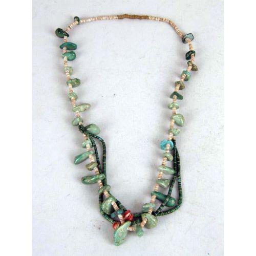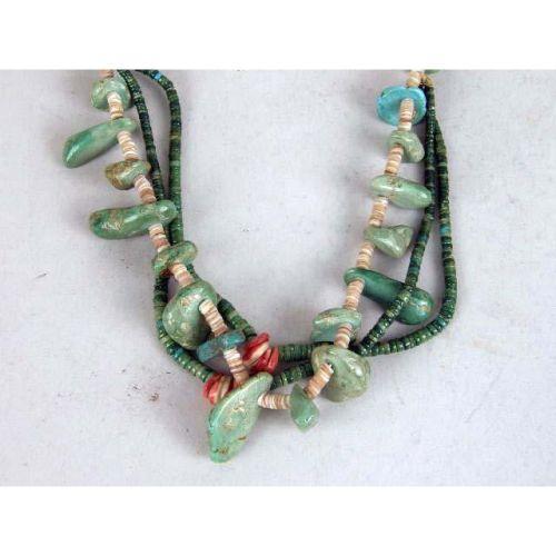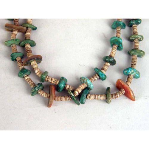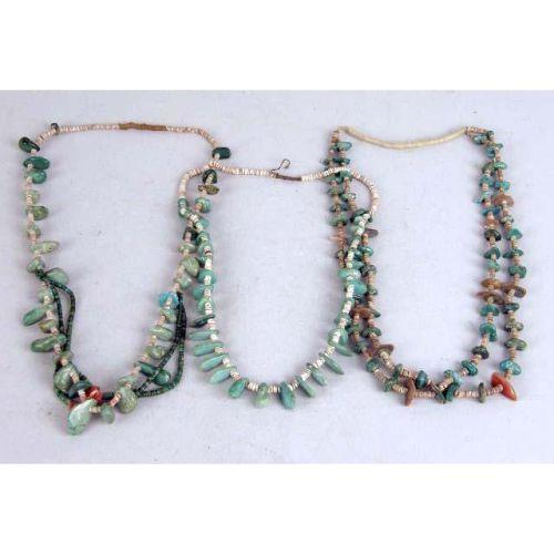 THREE NATIVE AMERICAN HEISHI NECKLACES WITH ALTERNATING TURQUOISE NUGGETS<BR><BR>Comprising a double strand, 28"long, a single strand 26"long, and a single strand, with additional turquoise and coral beaded part strands