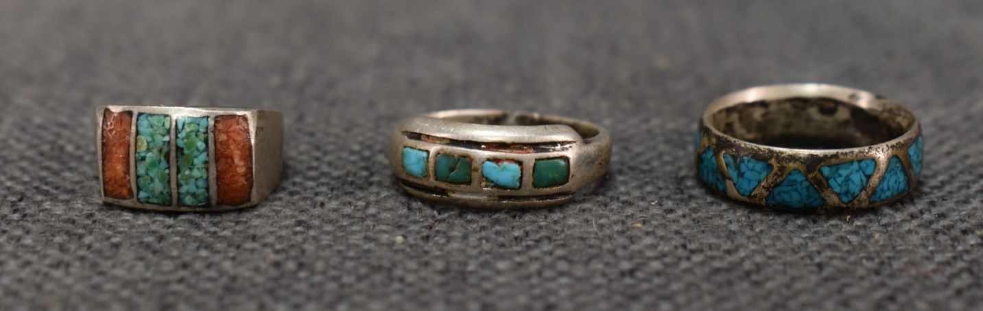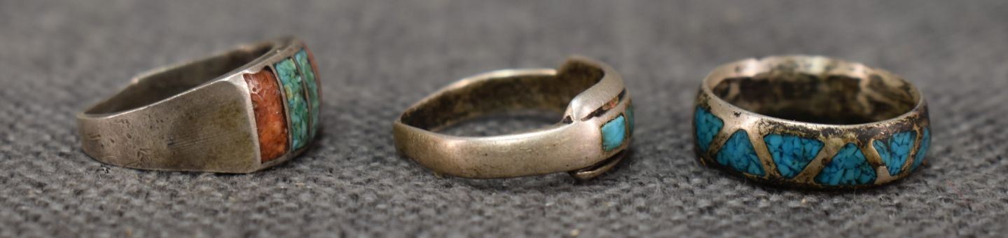 1970-80's Navajo Indian sterling silver with inlaid turquoise largest size 10.5 total weight 17 grams