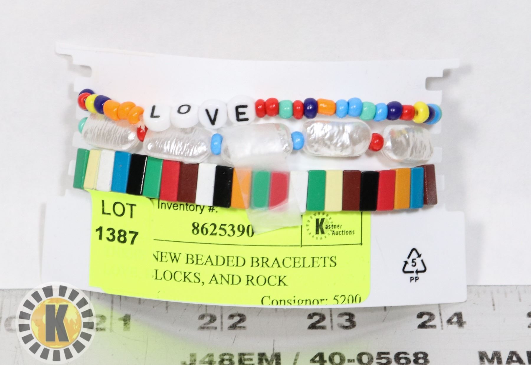 THREE NEW BEADED BRACELETS LOVE, BLOCKS, AND ROCK