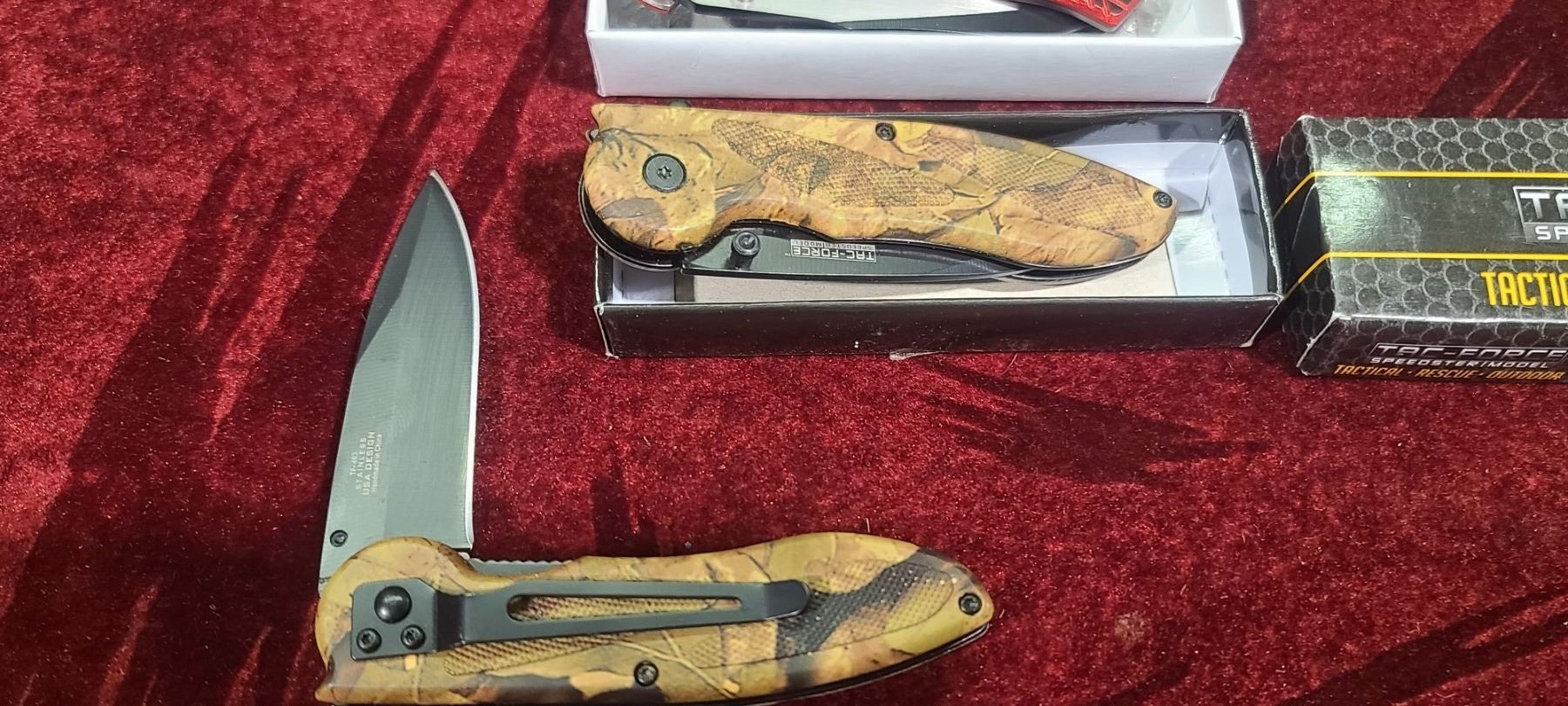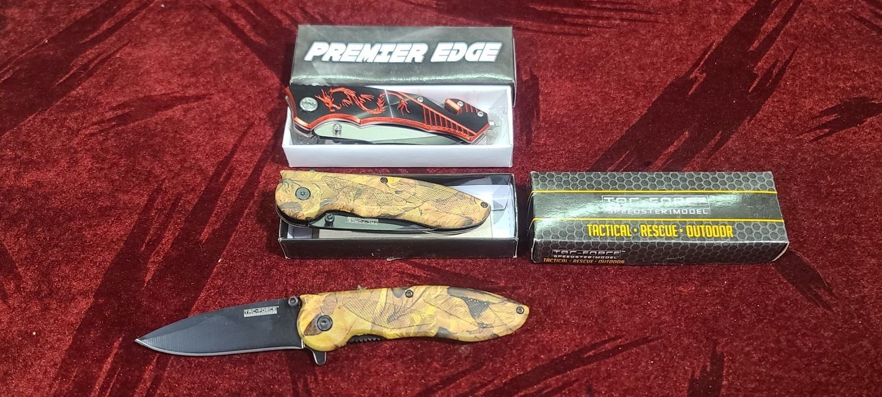 THREE NEW KNIVES - ONE HAS SEAT BELT CUTTER AND WINDOW PUMMEL