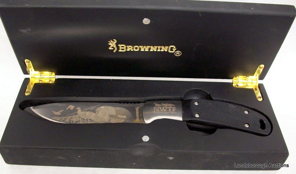 TWO BELT KNIVES 3" BLADE AND ONE 7 1/2" STRAIGHT BLADE IN BROWNING DISPLAY BOX