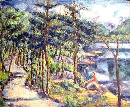 THREE OILS ON CANVAS; each depicting impressionistic forest scenes, one signed indistinctly l.r. The first 18" x 22"