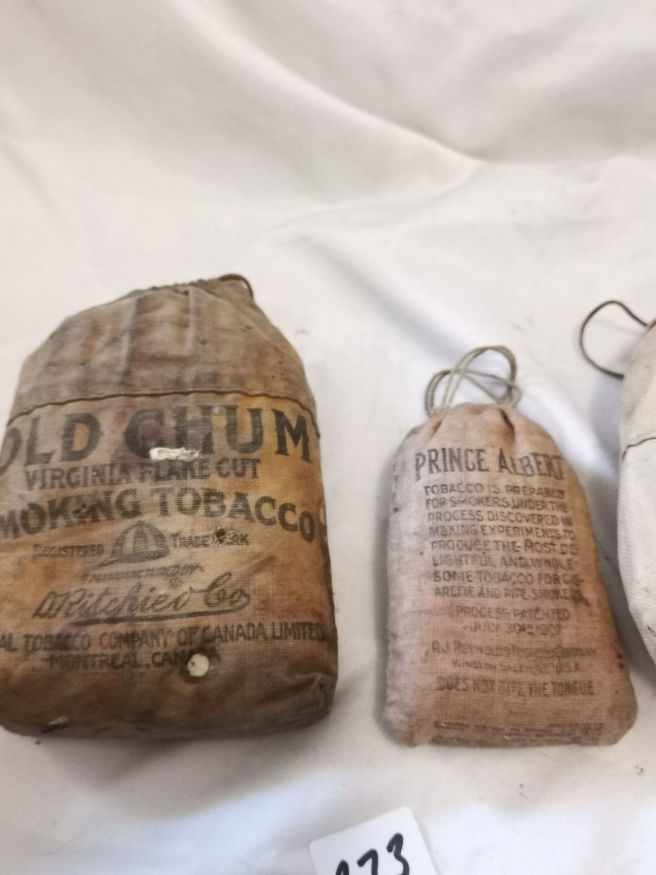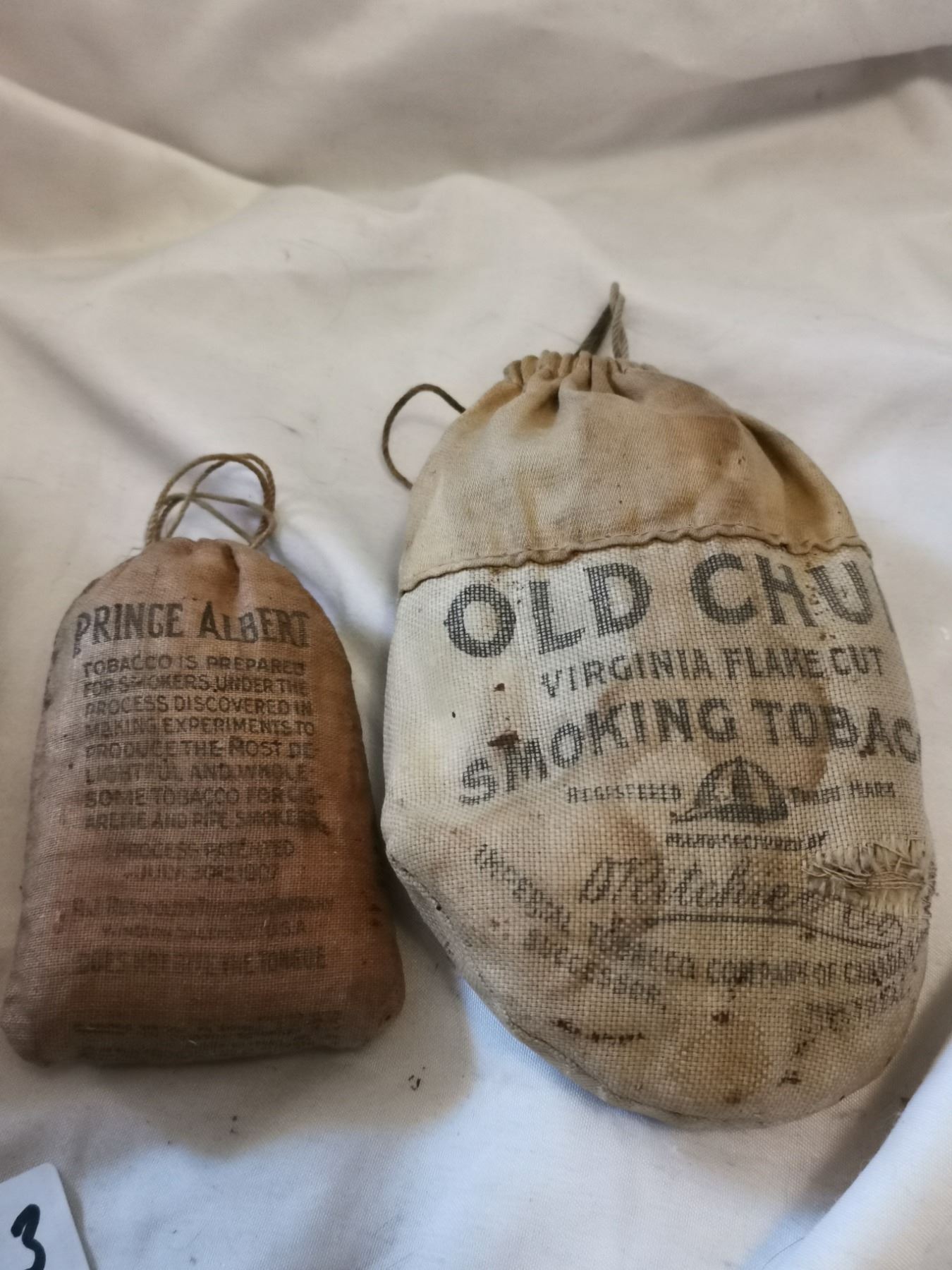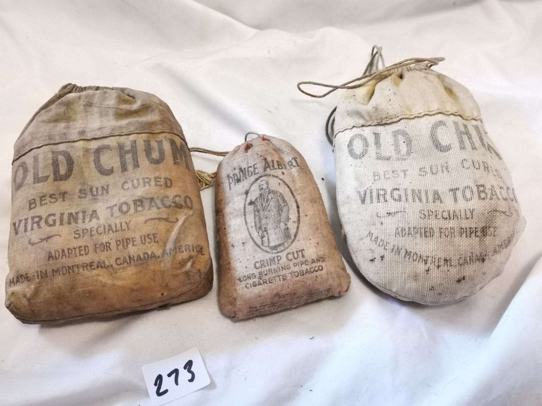 THREE OLD TOBACCO POUCHES, PRINCE ALBERT, OLD CHUM