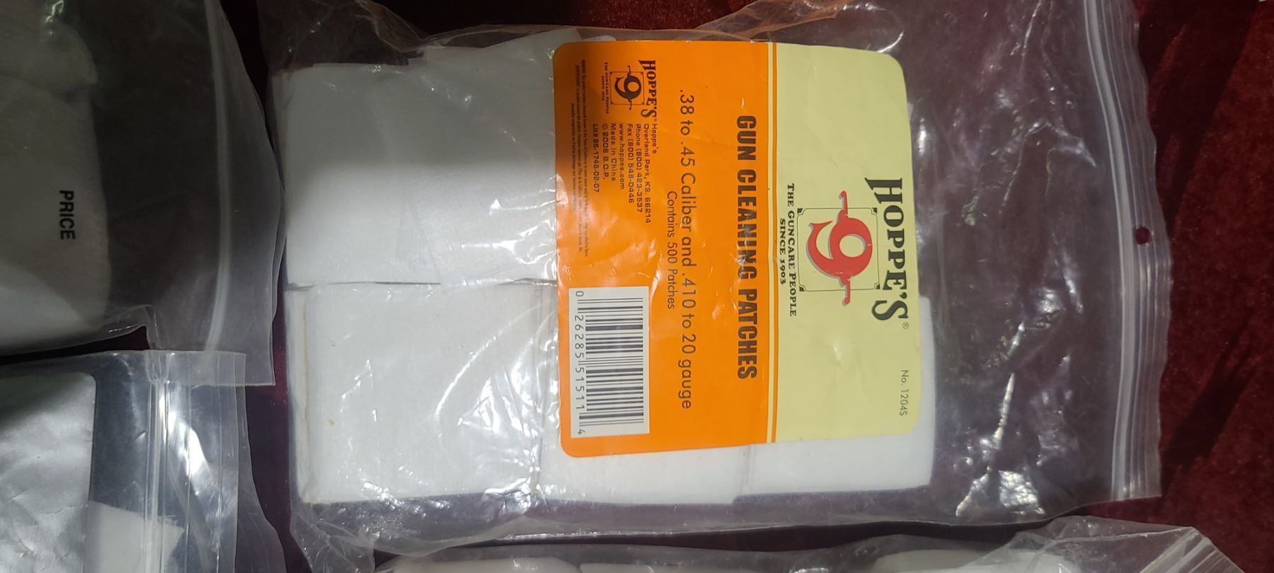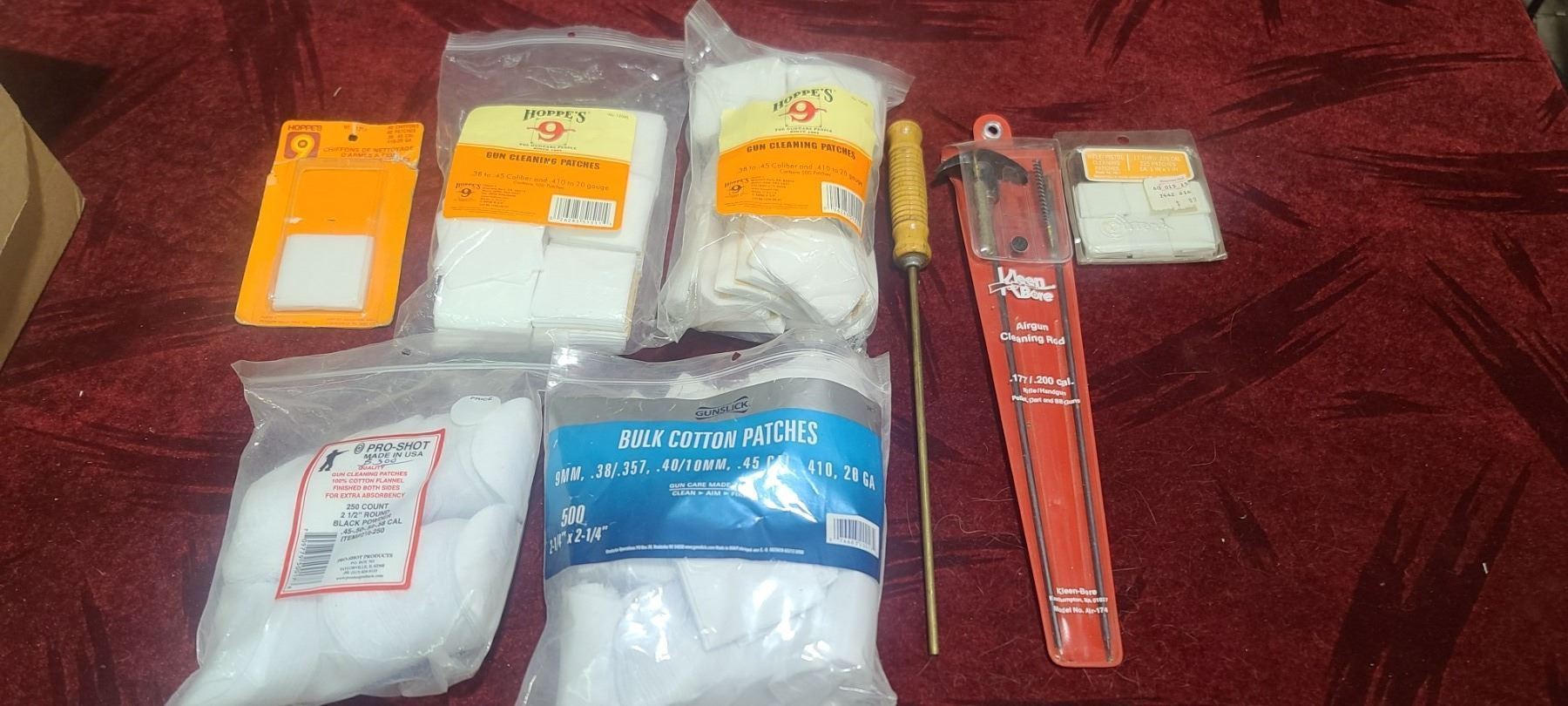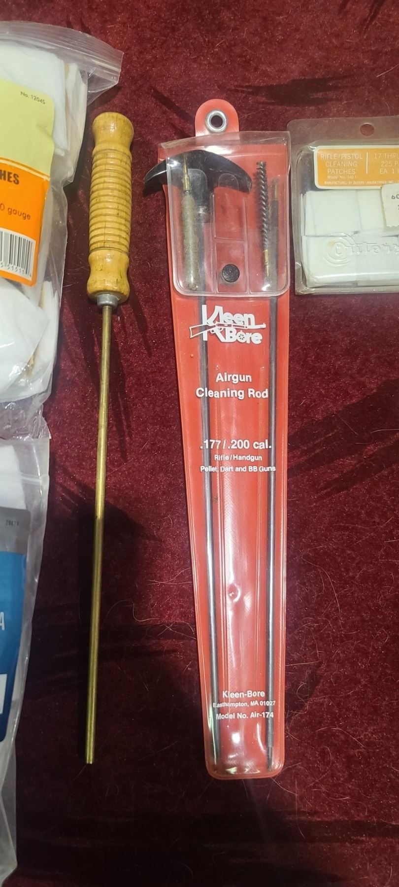 THREE PACKS OF GUN/RIFLE CLEANING PATCHES AND KLEEN BORE AIRGUN CLEANING ROD .117