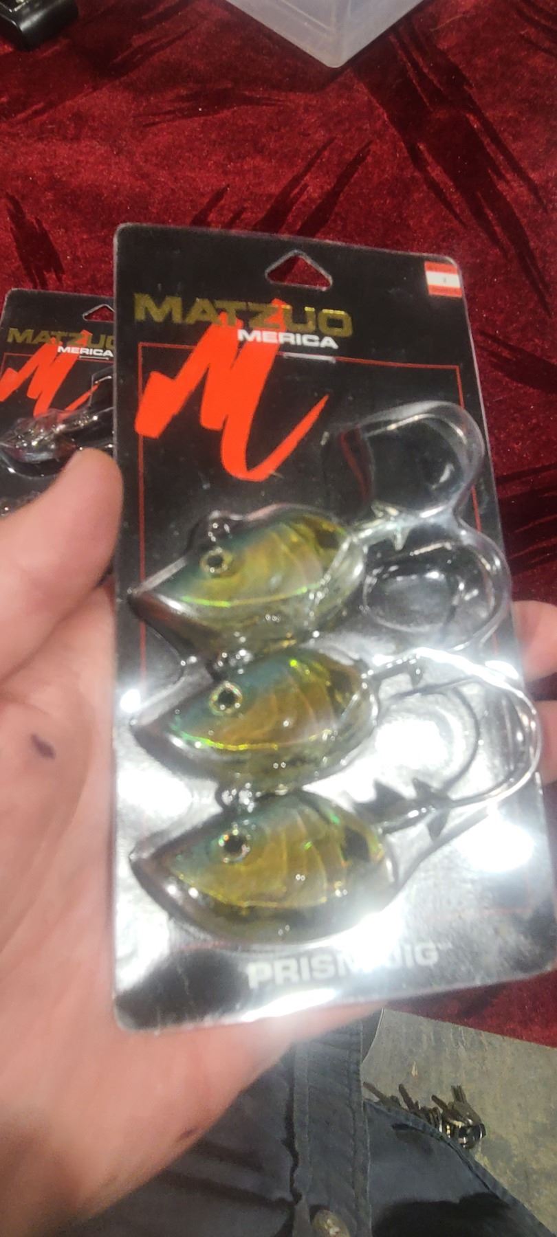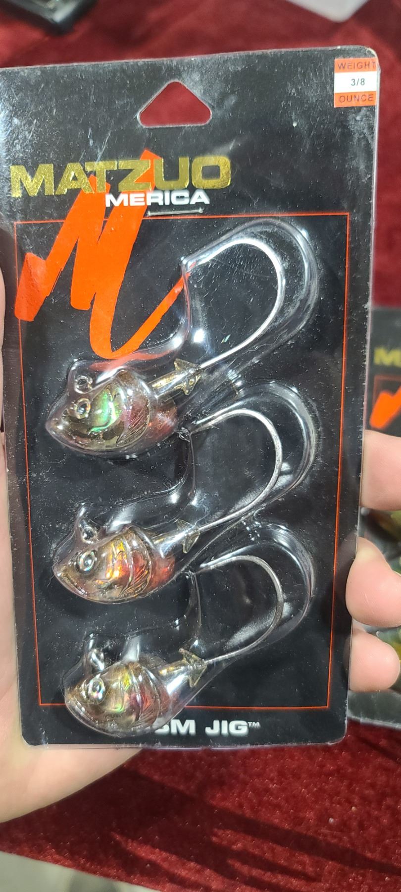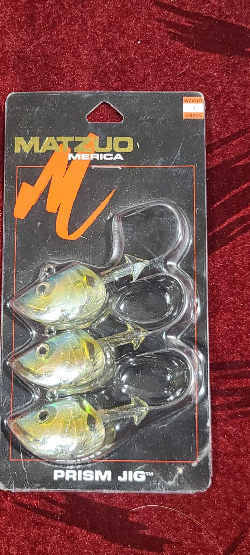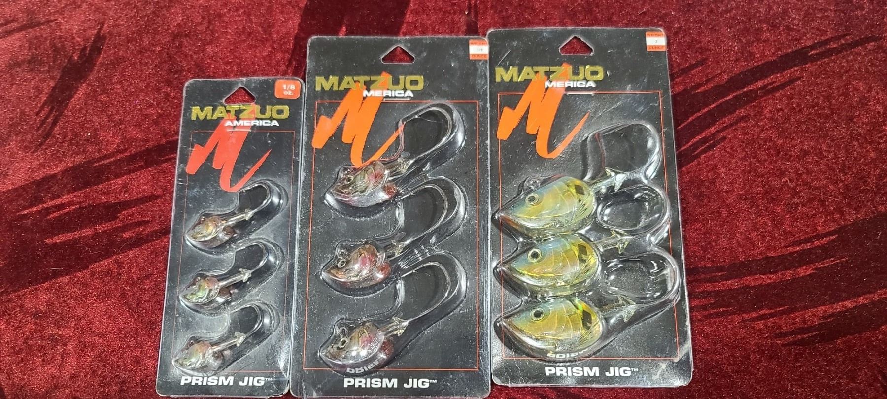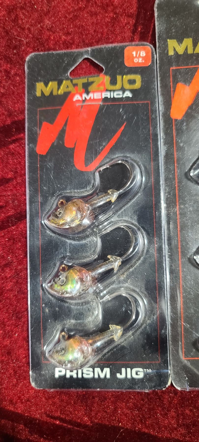 THREE PACKS OF MATZUO MERICA PRISM JIGS 1/8, 3/8, AND 2OZ