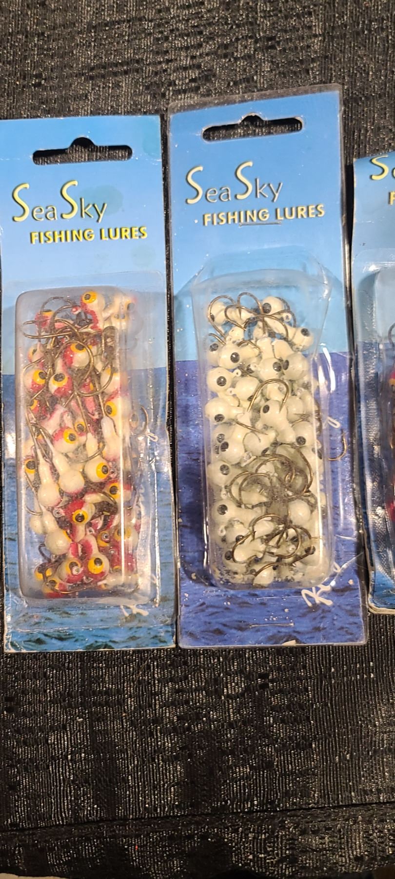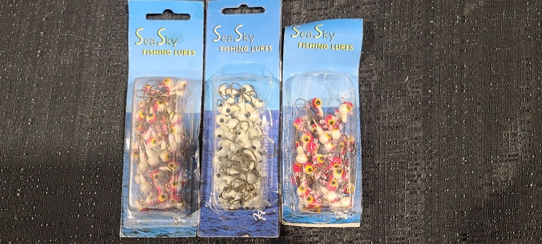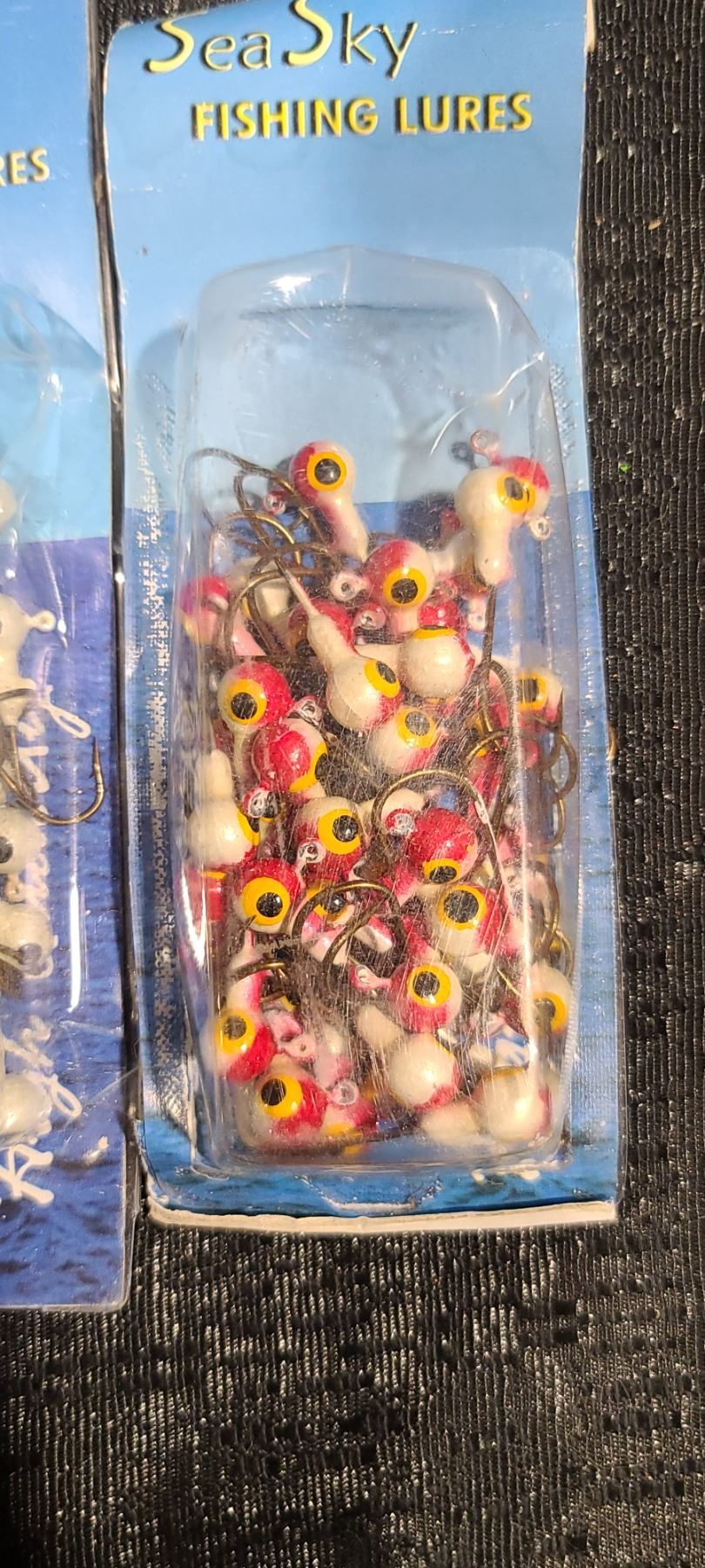 THREE PACKS OF RED/WHITE AND WHITE JIGS