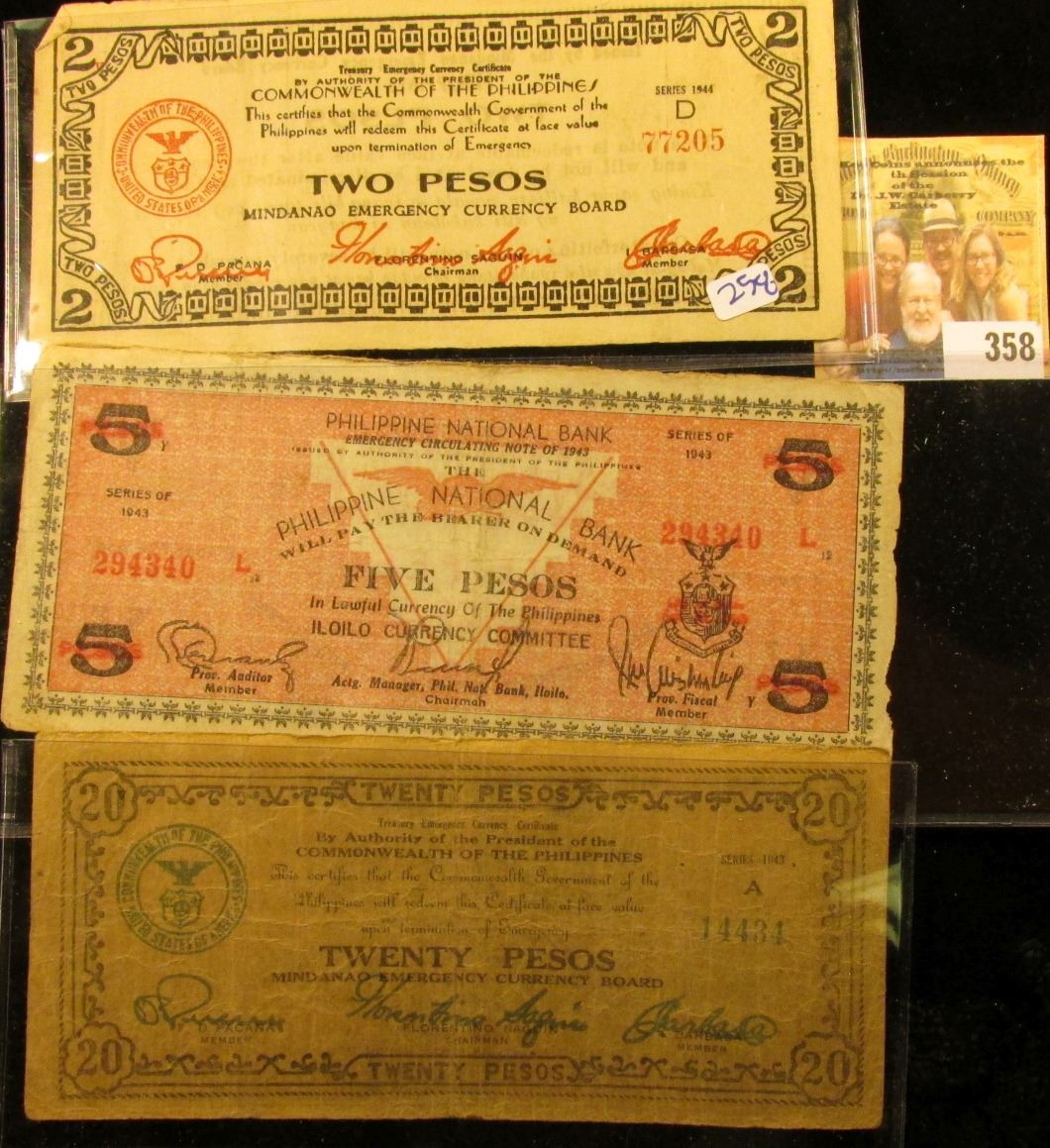THREE PHILLIPINES EMERGENCY NOTES. THESE WERE PRINTED DURING THE JAPANESE OCCUPATION OF THE PHILLIPNES. IF THE JAPANESE CAUGHT YOU WITH THESE NOTES YOU WOULD BE EXECUTED ON THE SPOT.