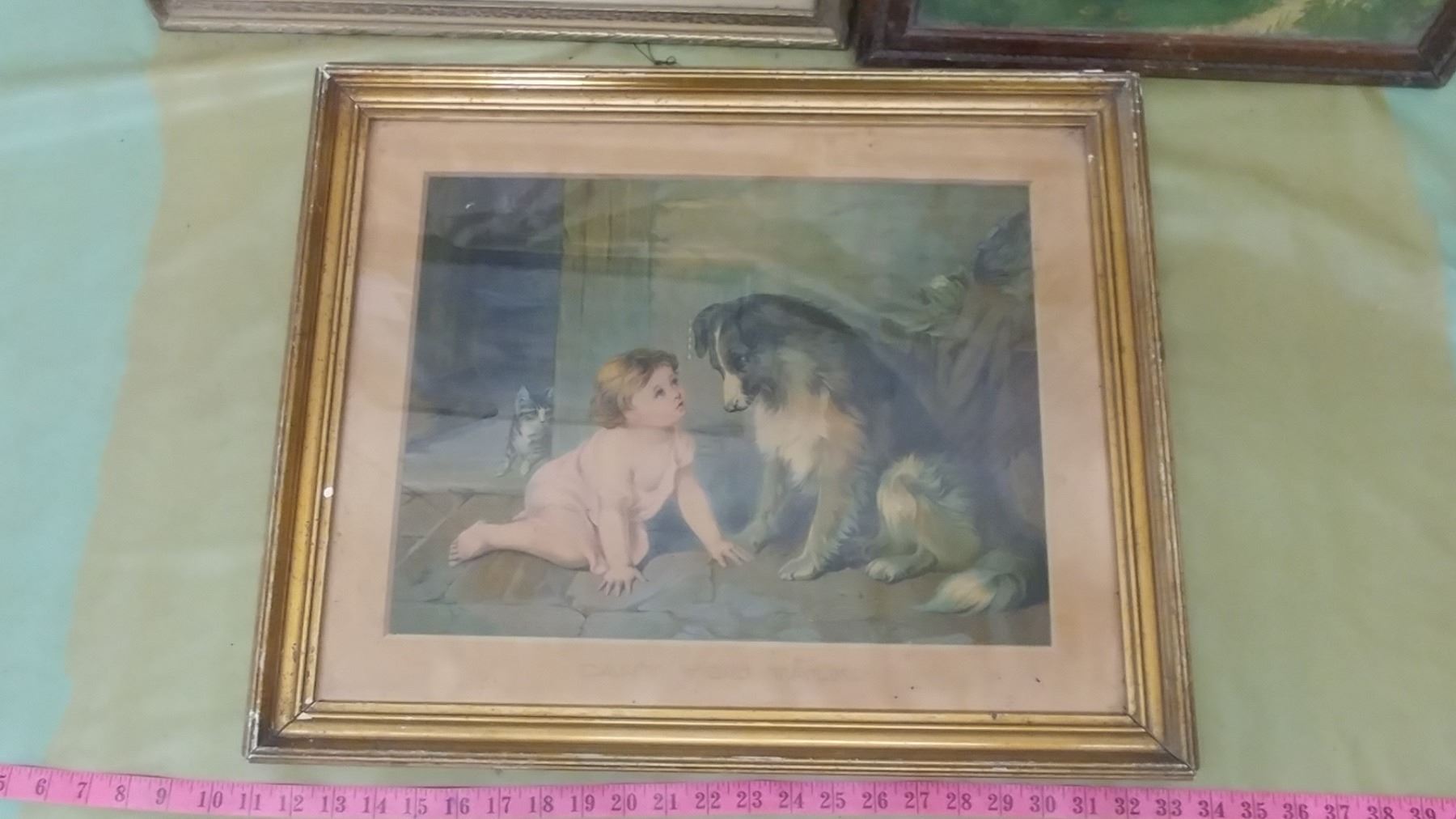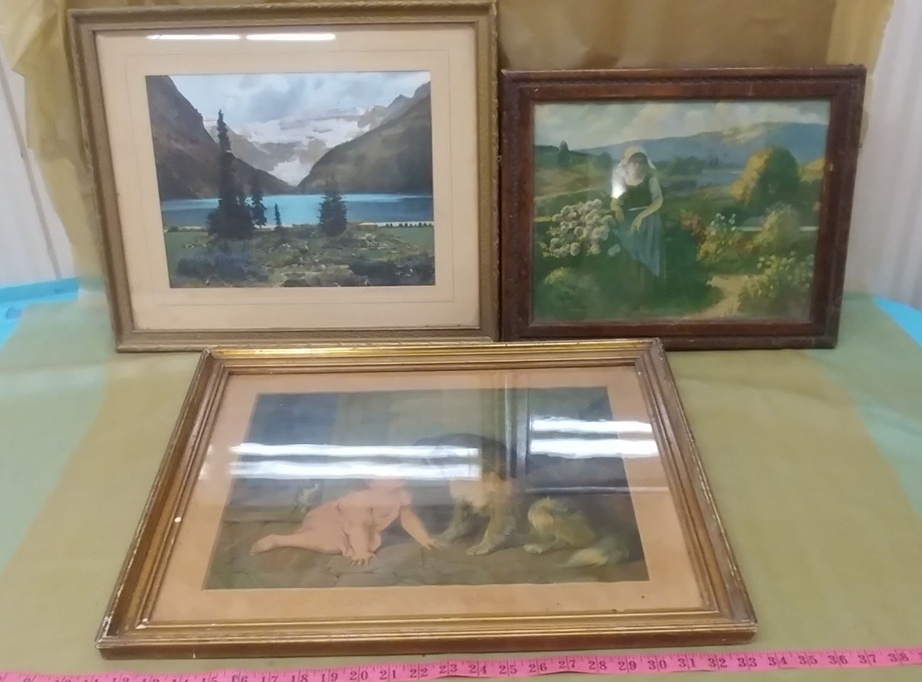 THREE PICTURES (BABY & DOG, MOUNTAINS, WOMAN & FLOWERS)