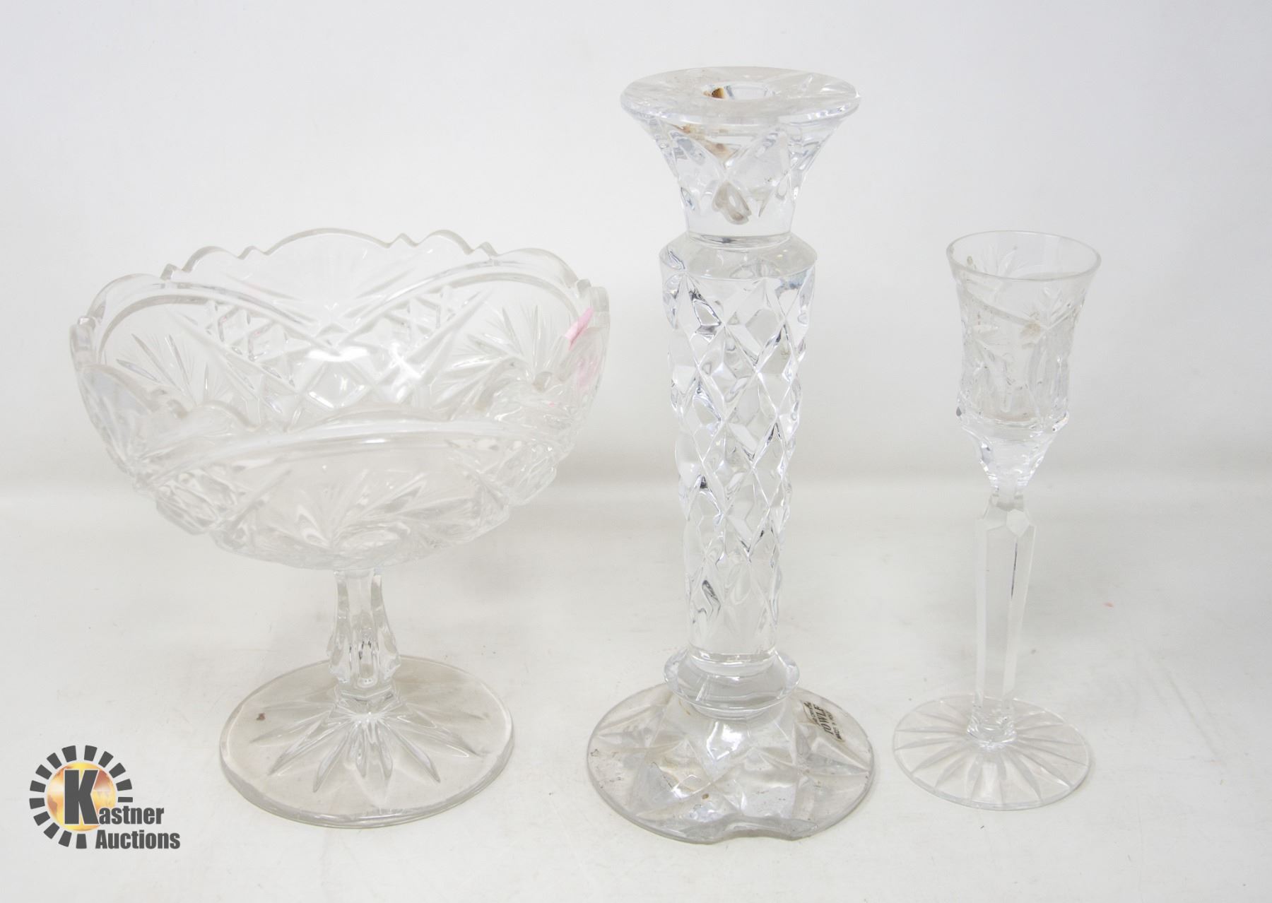 CANDY DISH, CANDLE STICK AND WINE GLASS *** THIS AUCTION IS LOCATED @ 11813 95a St NW, Edmonton, AB.***