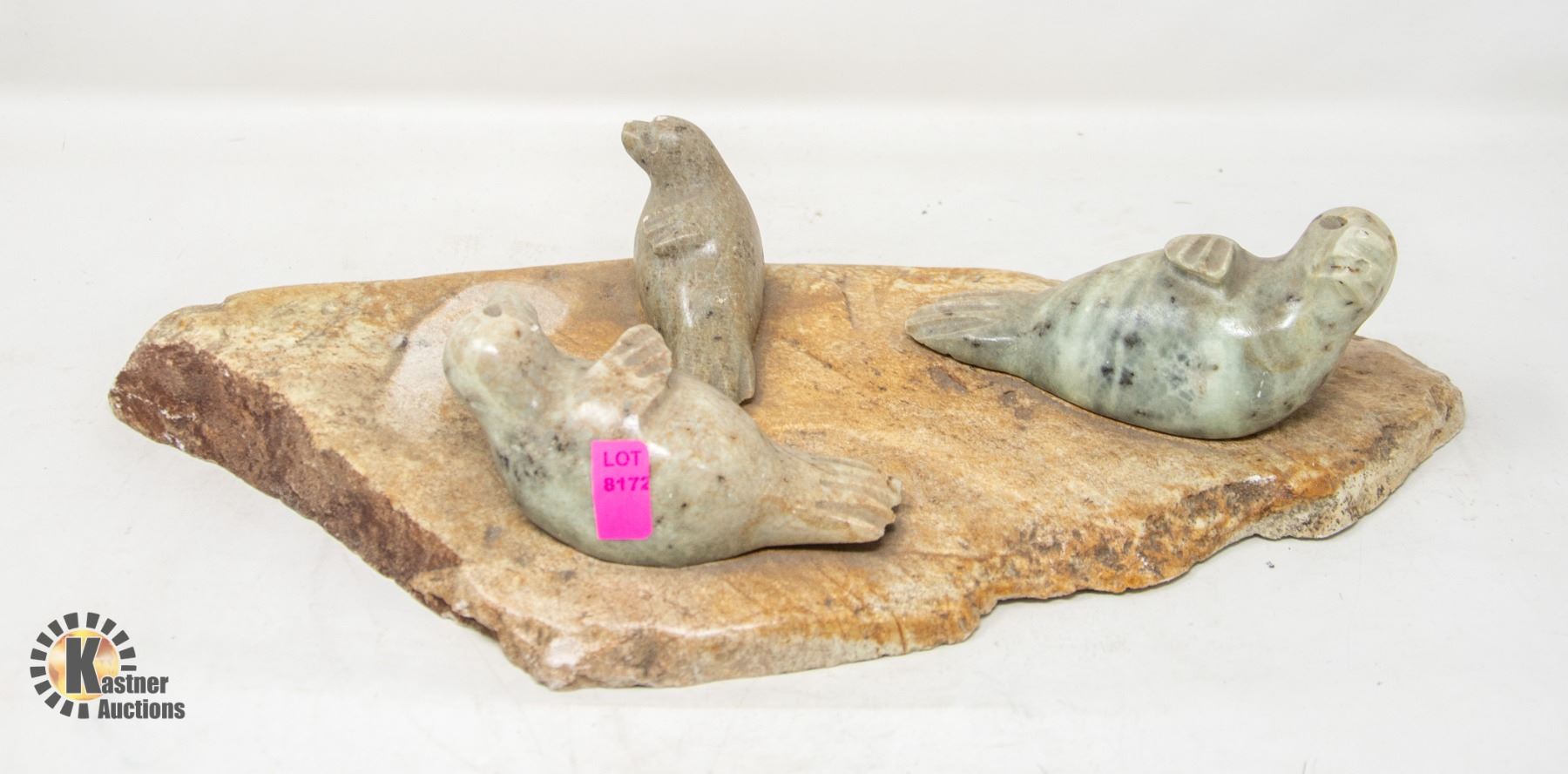 THREE PIECE SEAL STONE CARVED SCULPTURE
