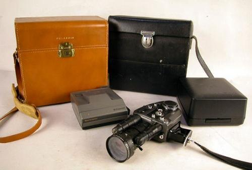THREE POLAROID CAMERAS WITH CASES Including a Spectra system example, a 1987 "Stars & Stripes" America's cup commemorative Spectra system example, and a 110A land camera example, together with a Beaulieu 40082MII movie camera and case, 4 pieces