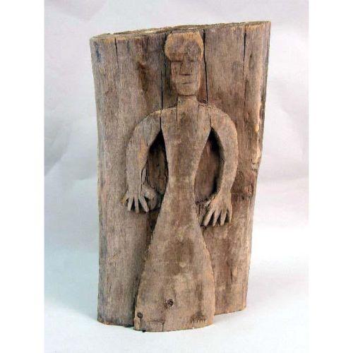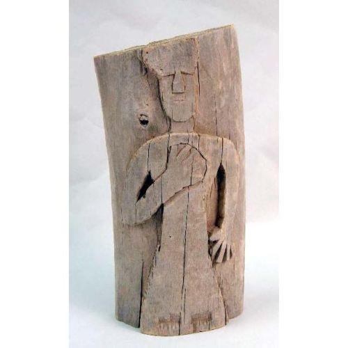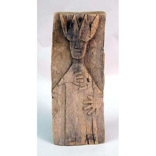 THREE PRIMITIVE HUMAN-FORM WOOD CARVINGS<BR><BR>The tallest 14"h x 8"w x 3"d