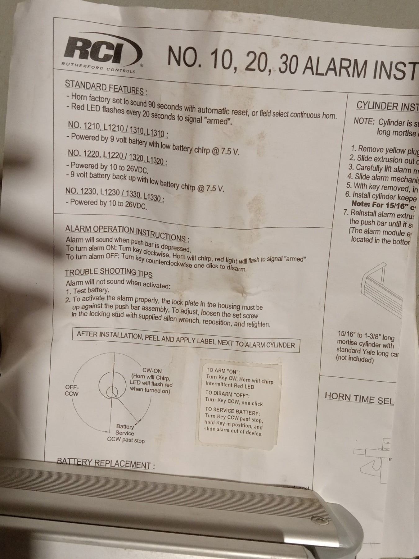 THREE RCI 1310F-28 PANIC DOOR/EMERGENCY PUSH BAR WITH ALARM - NEW
