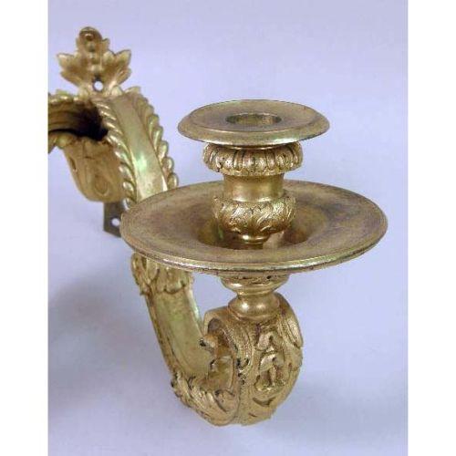 THREE REGENCE STYLE TWO-LIGHT SCONCES<BR><BR>7"h x 12"w