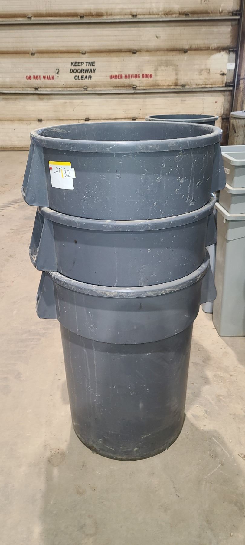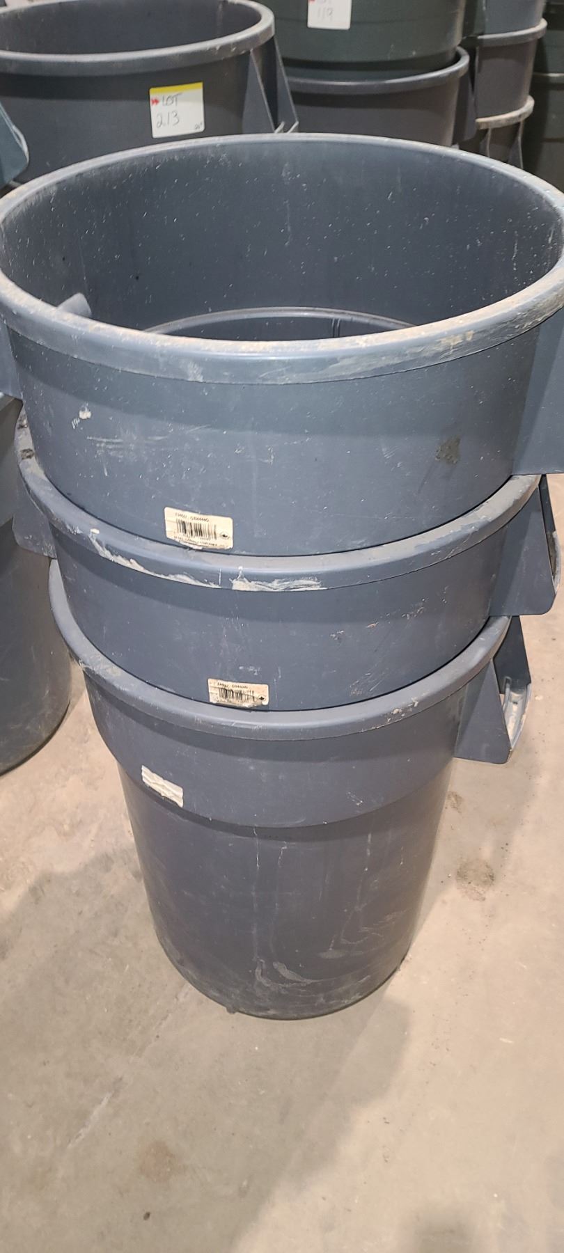 THREE RUBBERMAID 24" DIA GARABAGE CANS