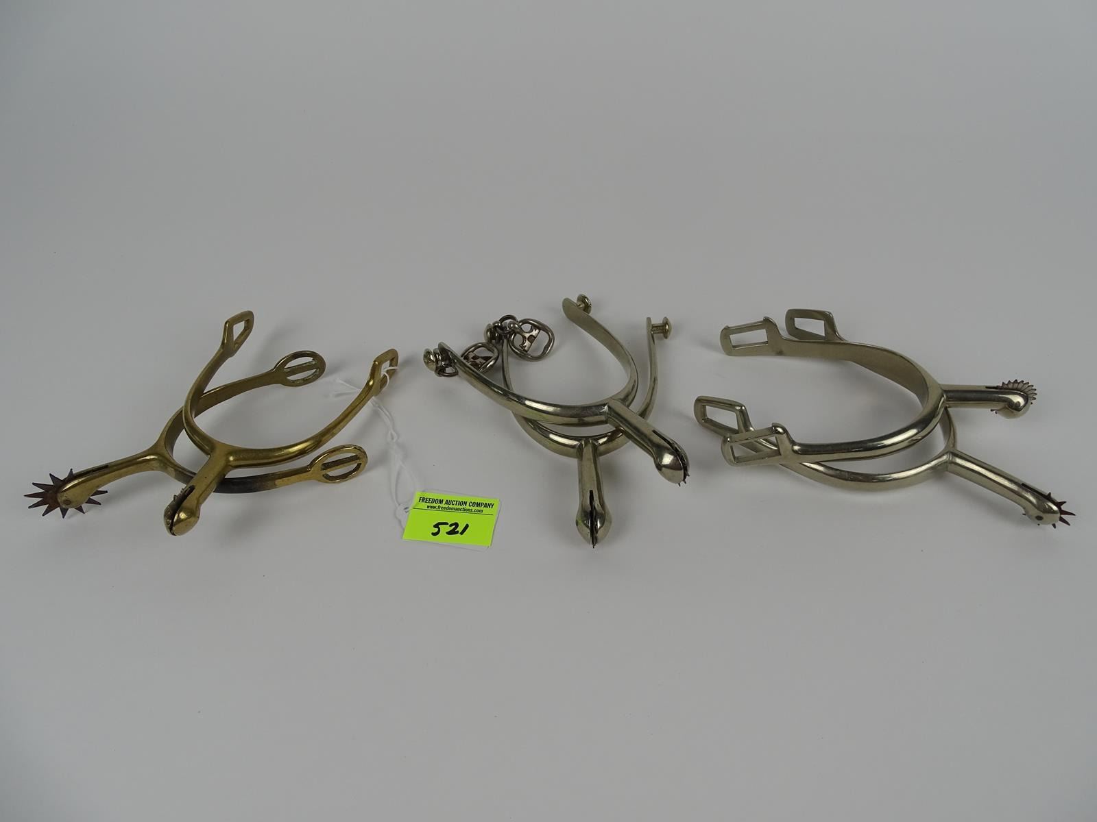 THREE SETS OF NICKEL COWBOY SPURS