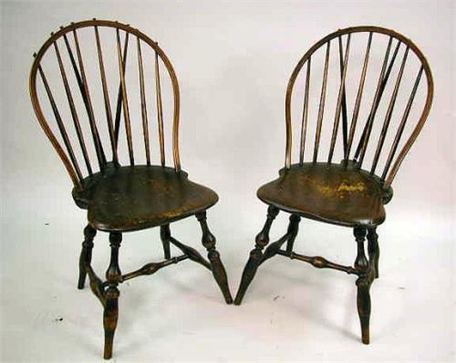 THREE SIMILAR BOW-BACK BRACE-BACK WINDSOR SIDE CHAIRS; Rhode Island, together with another bow-back Windsor side chair, various wear, paint of a later date
