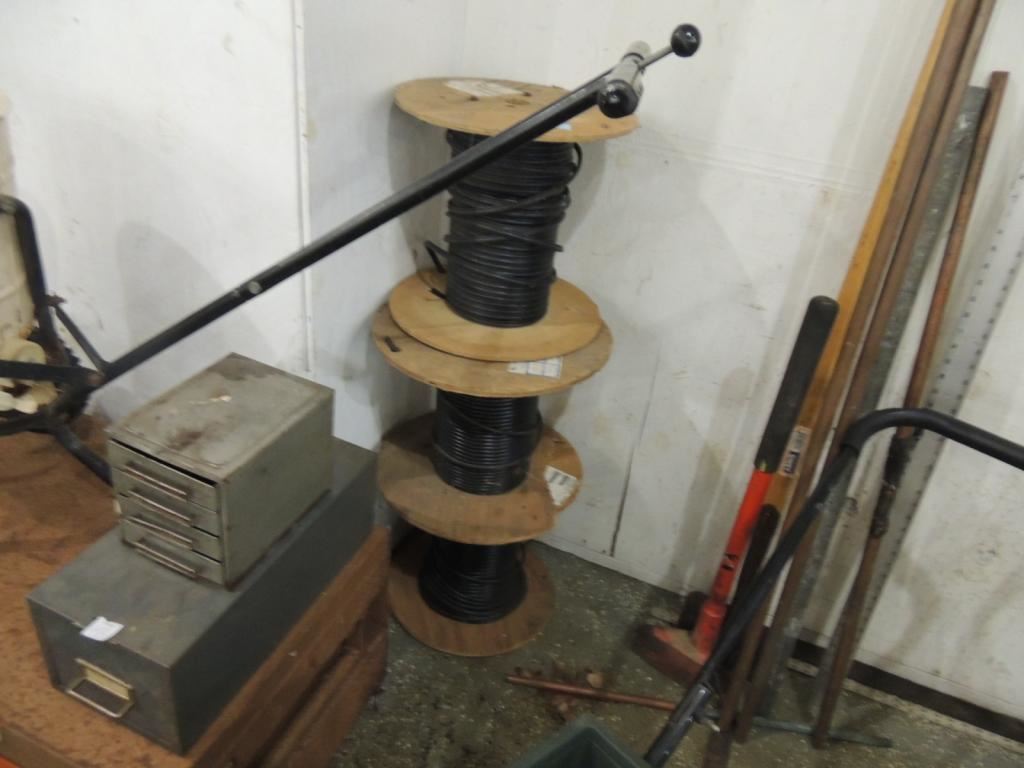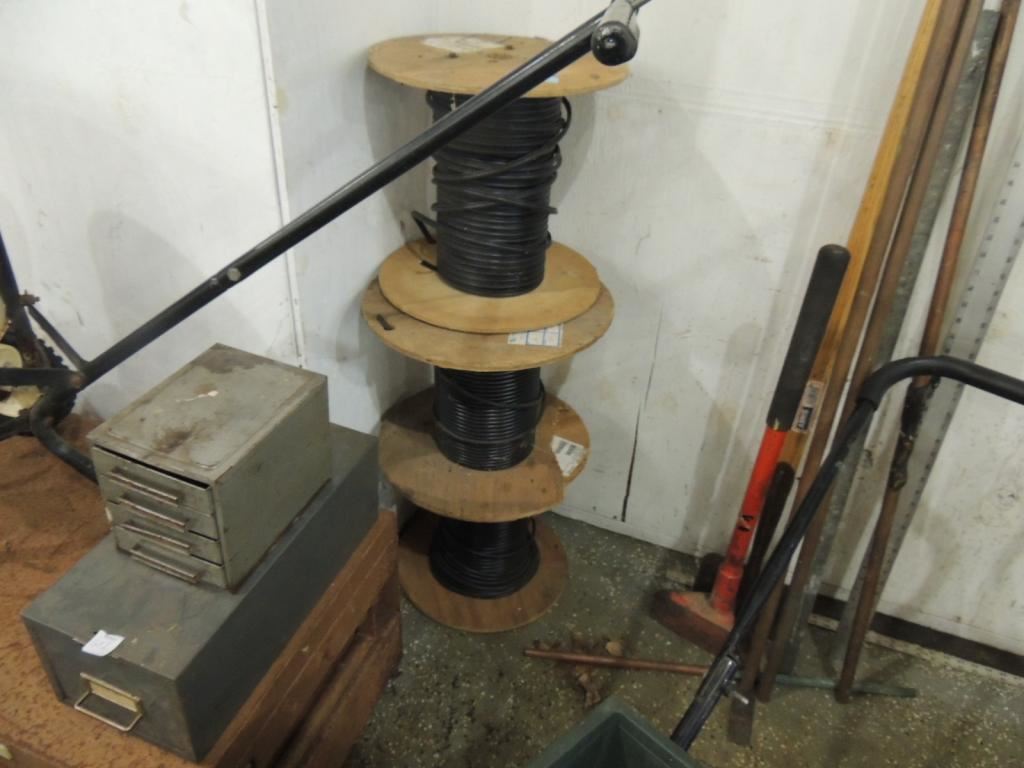 THREE SPOOLS HEAVY DUTY WIRE, AS SHOWN SEE PHOTO FOR MORE DETAILS.
