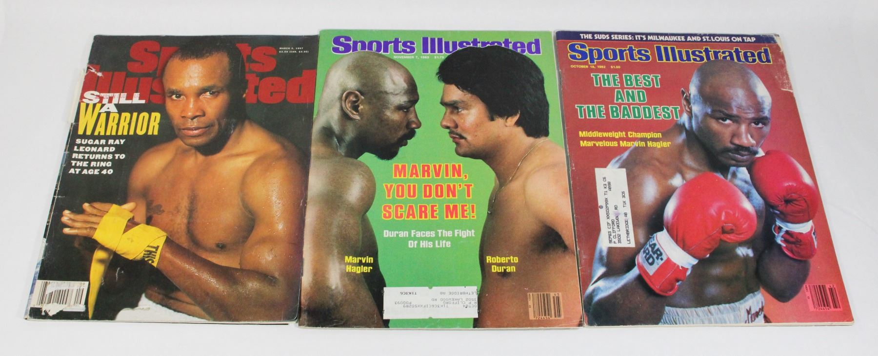 OCTOBER 18 1982 MARVIN HAGLER, MARCH 3 1997 SUGAR RAY LEONARD, NOVEMBER 7, 1983 MARVIN HAGLER + ROBERTO DURAN