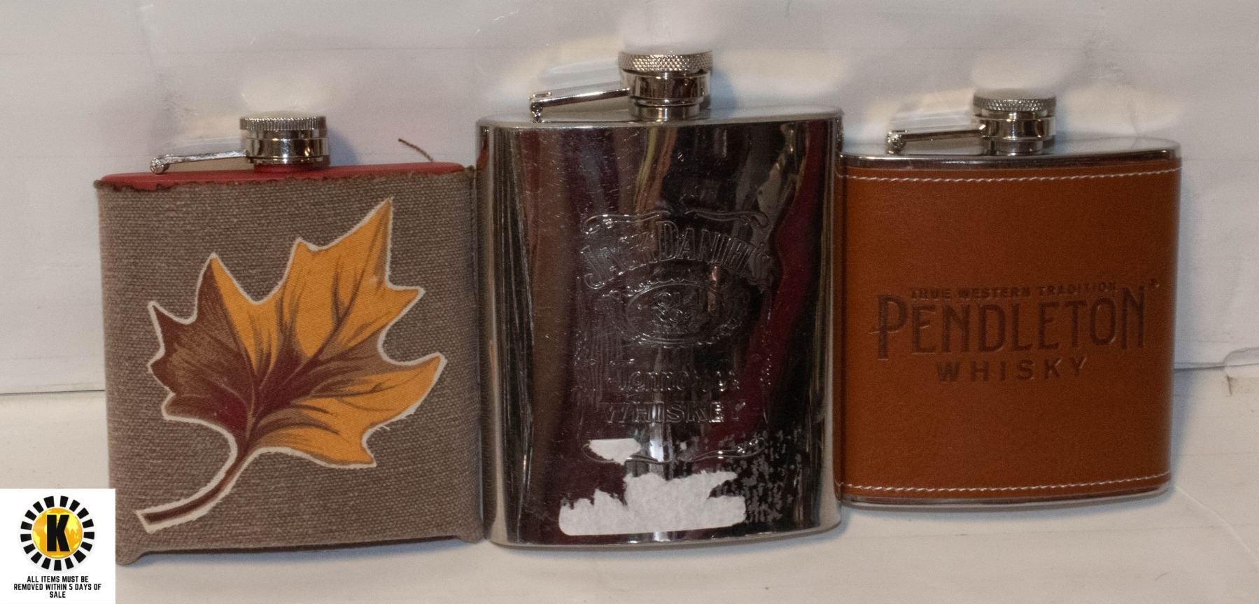 THREE STAINLESS LIQUOR FLASKS JACK DANIELS