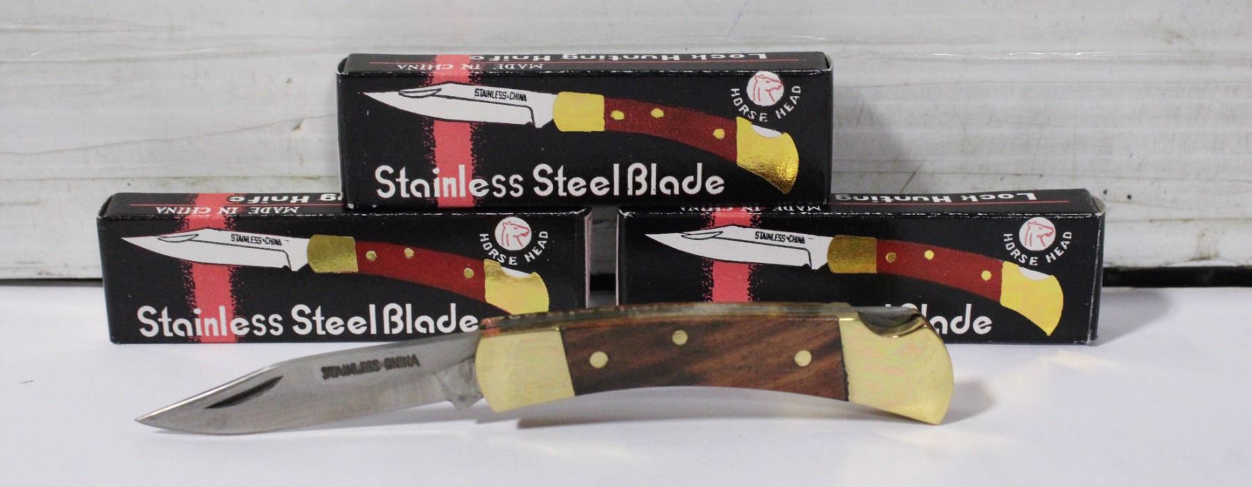THREE STAINLESS STEEL LOCKABLE POCKET KNIFE