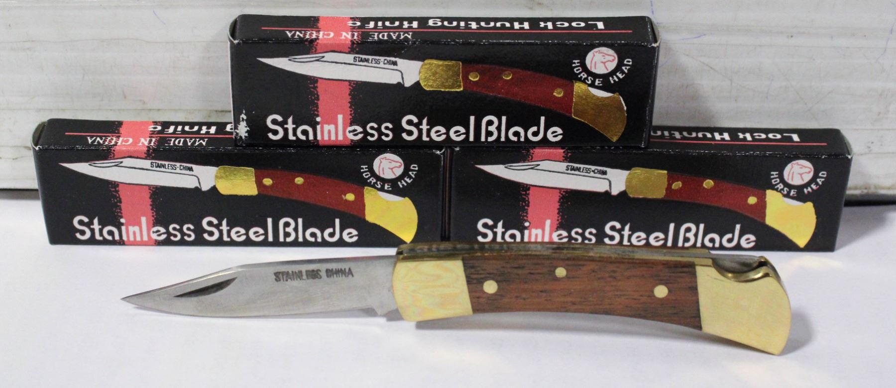 THREE STAINLESS STEEL LOCKABLE POCKET KNIFE