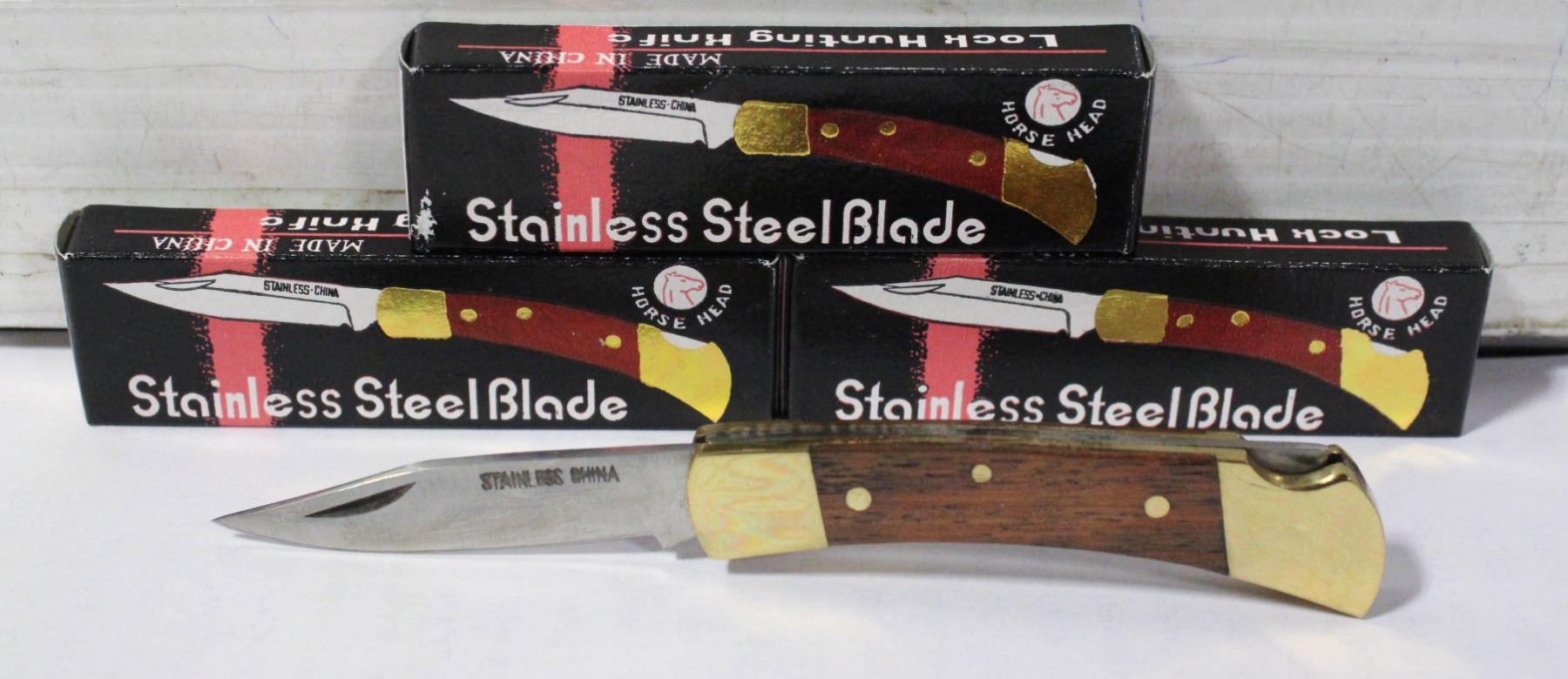 THREE STAINLESS STEEL LOCKABLE POCKET KNIFE