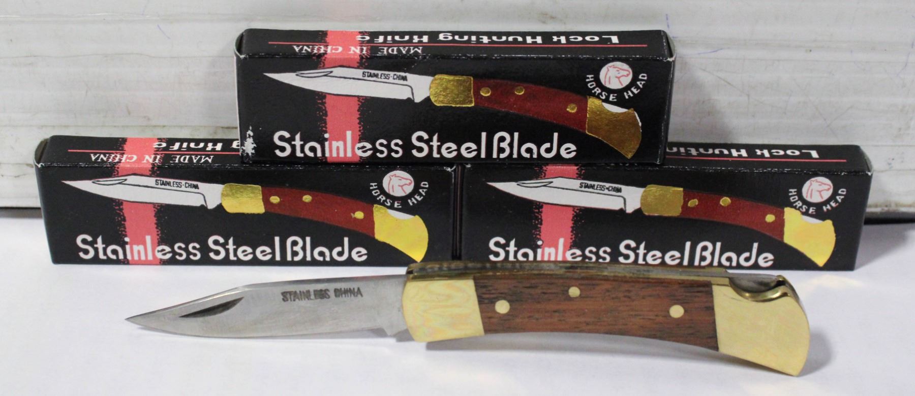 THREE STAINLESS STEEL LOCKABLE POCKET KNIFE