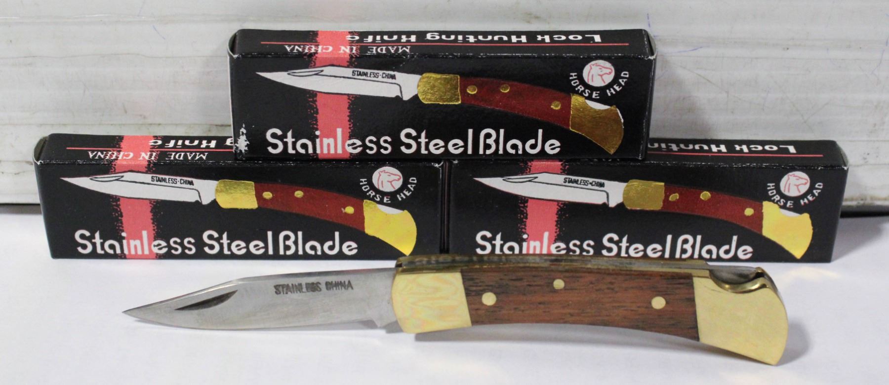 THREE STAINLESS STEEL LOCKABLE POCKET KNIFE
