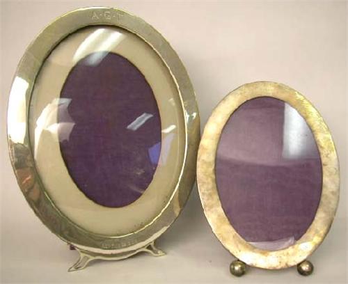 THREE STERLING SILVER PICTURE FRAMES; Two of oval form, 14", & 11"long, the third rectangular, 12"long, all monogrammed, losses