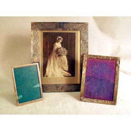 THREE STERLING SILVER PICTURE FRAMES<BR><BR>Largest 14-1/4"h