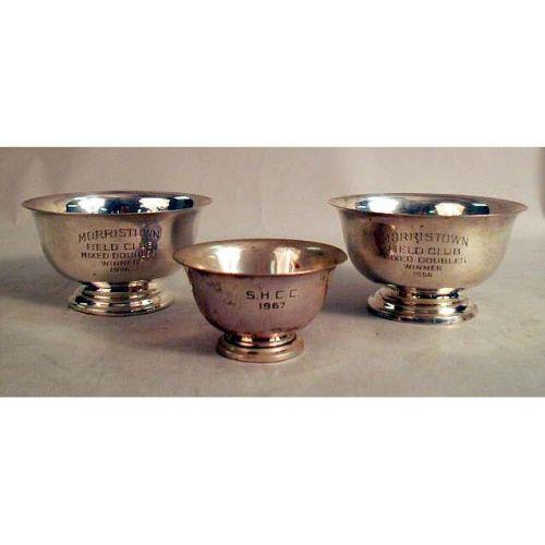 THREE STERLING SILVER REVERE-FORM BOWL TROPHIES<BR><BR>Largest 2-3/4"dia., total weight apx. 10 T.O.